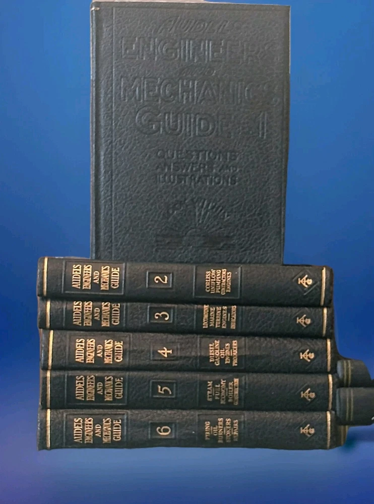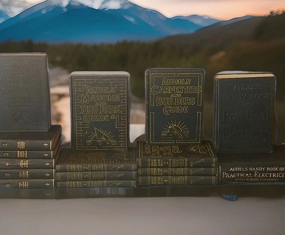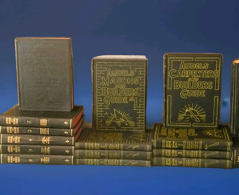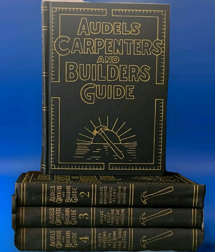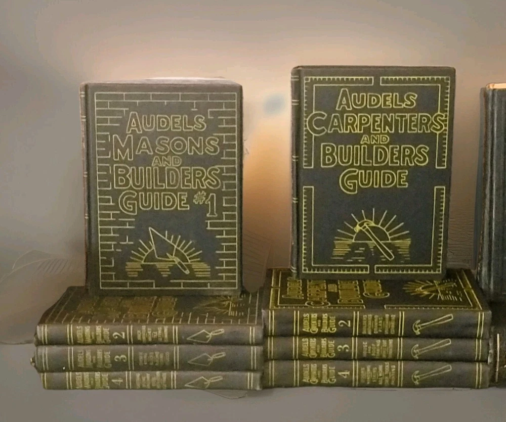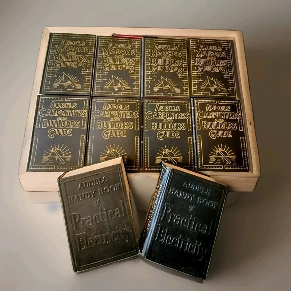 The product is a 16-book lot of Audels Guides, covering topics such as carpentry, masonry, engineering, mechanics, and electricity. Published by Theo. Audel & Company, the books are leather-bound hardcover editions with illustrations. Written by Frank D. Graham & Thomas J. Emery. A very nice vintage pre-owned lot of 16 Audels Guides books. All in very good overall pre-owned vintage condition. INCLUDED : 1. Engineer s & Mechanics Guides 1- 6 (softbound leather. Dates published varies span years 1927-1940 2. Carpenters & Builders Guides - 1-4 Hardcover Cloth boards. The dates published varies and span years 1951, 1954 3. Mason's & Builders Guides 1-4 Hardcover with cloth boards. Dates published varies from 1959-51 4. Handy Books of Electricity - 2 HC - 1 -1962 with splitting to interior seam to spine (good/fair condition) - 1 1951 hardcover leather (fair condition) with splitting to interior seam to spine. I take all of the pictures to my listings and do utilize eBays AI background tool to make my listings look more professional. Please review all pics provided.