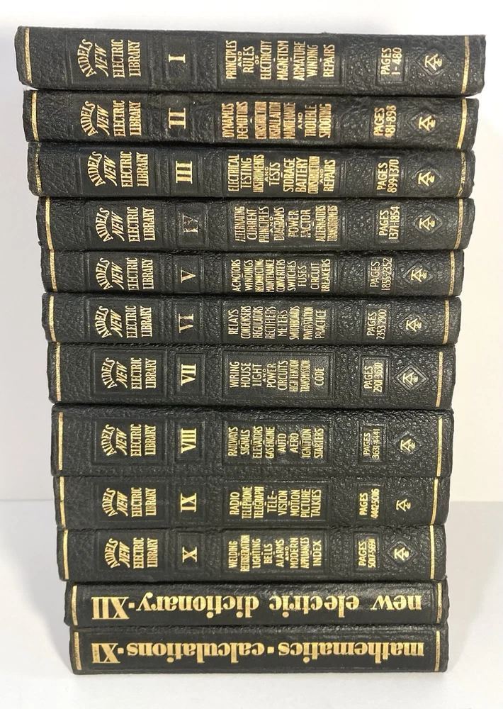 Audel's New Electric Library Books 12 Volume Set 1948. Condition is "Pre-Owned/Good/These books have wear not limited to scuffs, discoloration, foxing, worn edges, bends, creases, debris, spots or any imperfections due to age, use or storage. Could be further cleaned at your discretion. These books seem to be VERY NICE!” See photos for details. Books weigh and measure 10 Lbs., 5.6 Oz. Height 6 3/4” Length 5 1/4” Depth 3/4” to 1 1/4” Items packaged for shipping with protective materials and packing tape weigh, and measures about 12 Lbs., 10 Oz. Height 15” Length 12” Width 10” Shipped with USPS Media Mail Service or USPS Priority Mail Service at your choice. Ask questions prior to purchase. Payment due upon purchase. Shipment is only made to regular address, not to a PO Box, as eBay does not recommend it. Packaging is done with protective plastic for no water damage and ample amount of packing paper around item to prevent damage. These items come from a non-smoker and pet free home. There are no returns or cancellations and all items sold as is.
