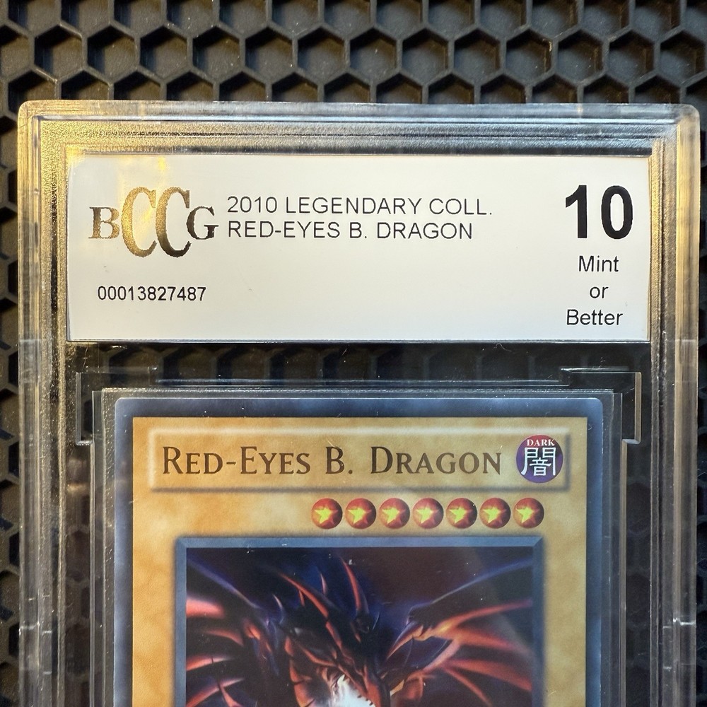 This Red-Eyes B. Dragon is a stunning Ultra Rare card from Legendary Collection 1, perfect for collectors and duelists alike. Its powerful 2400 ATK and striking artwork make it a standout piece. The BCCG 10 grading ensures top condition, and its limited availability adds serious value. A must-have for any Yu-Gi-Oh fan!