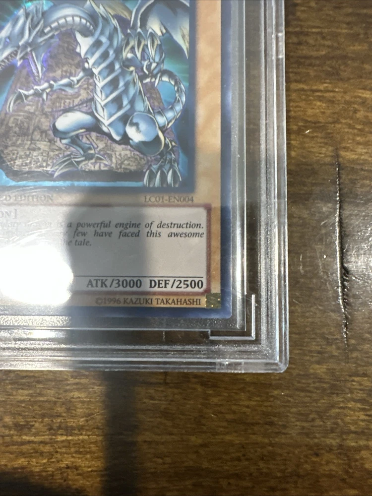 This BCCG Gem Mint 10 Blue Eyes White Dragon is a true collector's dream! The 2010 Legendary Collection Ultra Rare card shines with its holographic finish, capturing Seto Kaiba's iconic monster in stunning detail. Graded a perfect 10, its condition is flawless, making it a prized addition to any Yu-Gi-Oh! deck or display. With 3000 ATK, it's as powerful as it is beautiful—a must-have for serious duelists and fans alike. The rarity and prestige of this card make it a standout piece that holds both nostalgic and competitive value. If you love Yu-Gi-Oh!, this is an absolute gem worth owning!