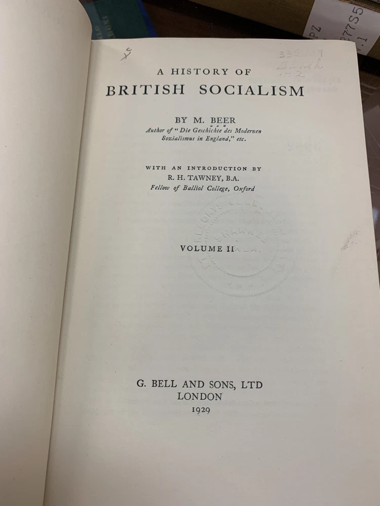 BEER - HISTORY OF BRITISH SOCIALISM - RARE 1929 Set Of 2 CIRCULATED LIBRARY BOOK WITH STAMPS. Good condition. VINTAGE RARE (Not responsible for eBay sub category item specifics auto populated results)...