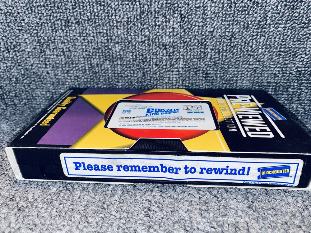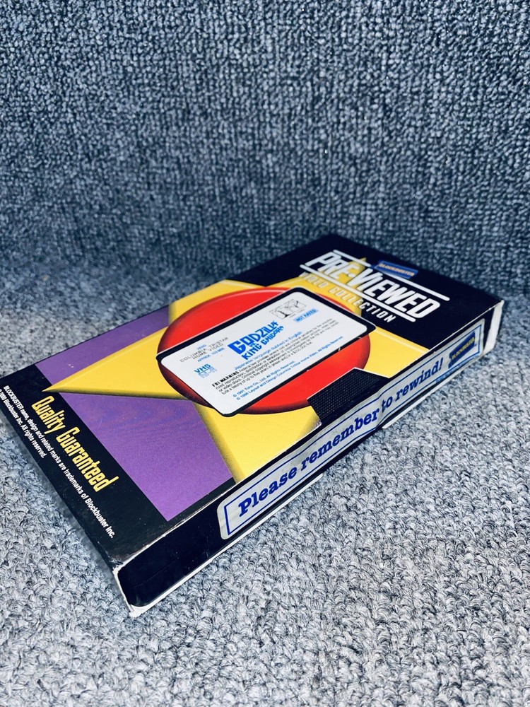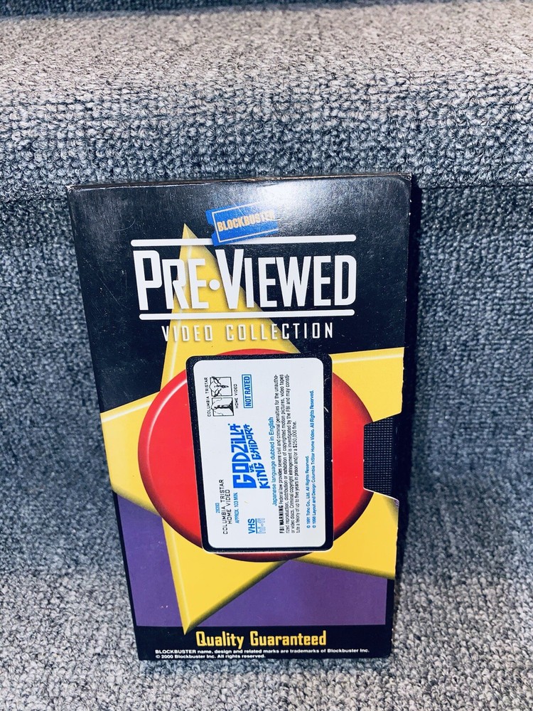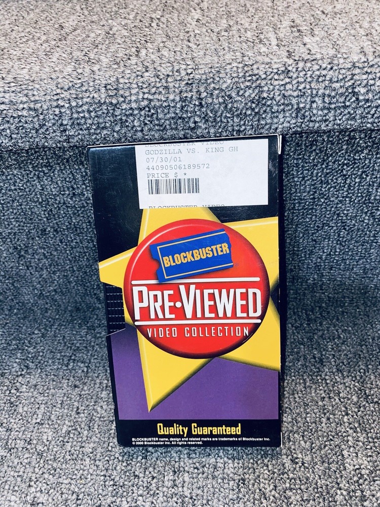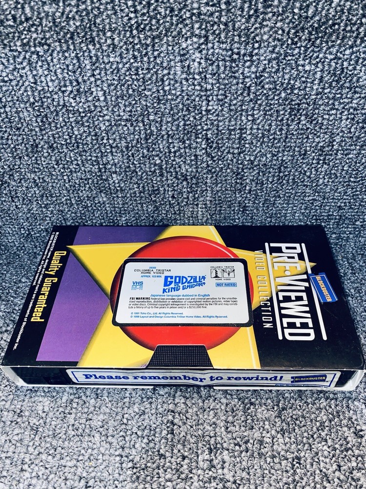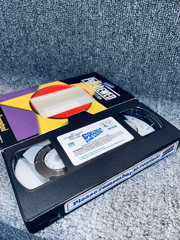 This is a vintage VHS tape of the classic movie "Godzilla vs King Chidora". The tape comes with its original case and a store sticker. It is a great addition to any movie collection, especially for fans of monster movies. The tape is in good condition and will provide hours of entertainment.