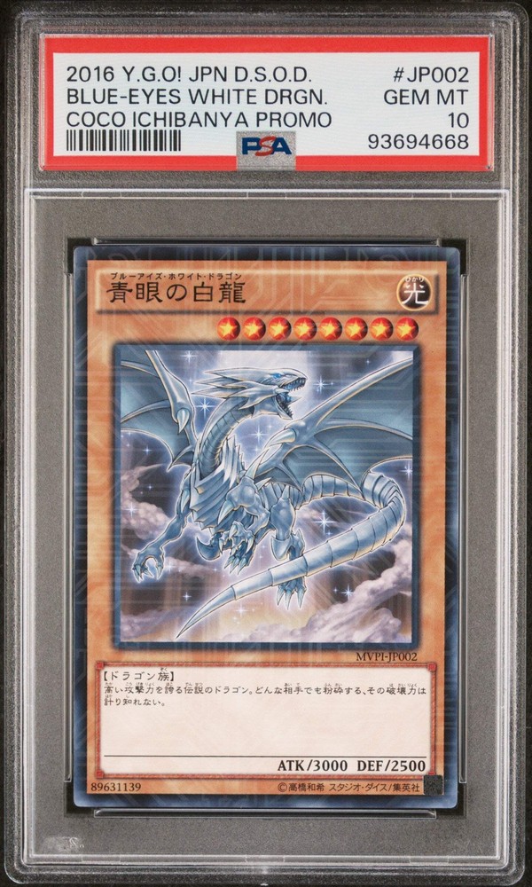 πππ BLUE EYES WHITE DRAGON MVPI-JP002 PSA 10 YU-GI-OH! 2016 JAPANESE PROMO This card is officially graded.Combined shipping is available for all items.Please enquire if you require additional information/photos about the item.Follow me on Instagram! πππ BLUE EYES WHITE DRAGON MVPI-JP002 PSA 10 YU-GI-OH! 2016 JAPANESE PROMO This card is officially graded. Combined shipping is available for all items. Please enquire if you require additional information/photos about the item. Follow me on Instagram! Γ Γ Γ Γ Γ Γ Buy now and save! Shipping info Click the Shipping & Payments tab above the listing description for more info Click the Shipping & Payments tab above the listing description for more info! Additional delivery notes PICK UP OPTION Sorry, our items are NOT available for pick-up. PAYMENT Immediate payment is required upon selecting "Buy It Now" or upon checking out through the cart. We accept payment via All Major Credit Cards (Visa, Mastercard, AMEX, Discover), Google Pay, PayPal, & Apple Pay (on mobile & eBay App). Thank you for shopping with us on eBay! Additional Information No additional information at this time Ask seller a question You might also like πππ GALAR FRIENDS 258/184 PSA 10 POKEMON VMAX CLIMAX JAPANESE FULL ART SR πππ YUGIOH - PSA 10 - CYBER DRAGON INFINITY - JP021 - PRISMATIC ALT ART JAPAN πππ YUGIOH - PSA 10 - BLUE EYES WHITE DRAGON - JP012 - PRISMATIC GOD BOX JAPA πππ YUGIOH - PSA 10 - FORTUNE LADY EVERY - JP038 - 20TH SECRET RARE JAPANESE Contact To contact our Customer Service Team, simply click the button here and our Customer Service team will be happy to assist. Ask seller a question Β© PokemonSteve Shipping & Payments Click the Shipping & Payments tab above the listing description for more info Payment Accepted Payment Methods Immediate payment is required upon selecting "Buy It Now" or upon checking out through the cart. We accept payment via All Major Credit Cards (Visa, Mastercard, AMEX, Discover), Google Pay, PayPal, & Apple Pay (on mobile & eBay App). Thank you for shopping with us on eBay! Returns Returns are accepted Items must be returned within 30 days of the auction ending Seller will pay for return shipping. eBay integration by
