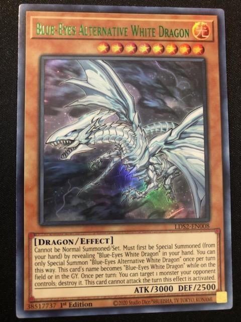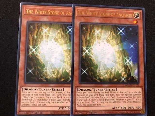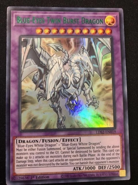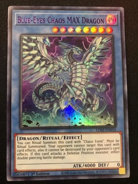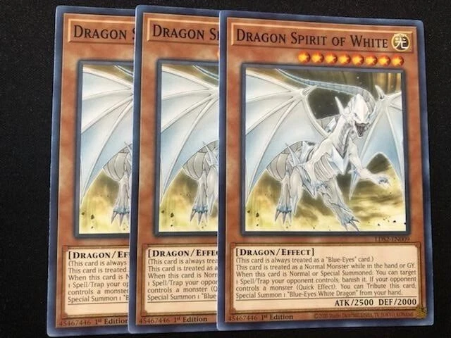 MONSTERS: 3X BLUE EYES WHITE DRAGON (COMMON- SPEED DUEL) 3X DRAGON SPIRIT OF WHITE (COMMON) 2X SAGE WITH EYES OF BLUE (COLOR ULTRA RARE) 1X BLUE-EYES ALTERNATIVE DRAGON (COLOR ULTRA RARE) 1X BLUE-EYES SOLID DRAGON (COLOR ULTRA RARE) 2X THE KING OF D. (ULTRA RARE) 2X THE WHITE STONE OF ANCIENTS (GOLD RARE) 3X THE WHITE STONE OF LEGEND (COMMON) 2X MAIDEN WITH EYES OF BLUE (COMMON) 2X PROTECTOR WITH EYES OF BLUE (COMMON) 2X MASTER WITH EYES OF BLUE (COMMON) 2X PRIESTESS WITH EYES OF BLUE (COMMON) 1X BLUE-EYES CHAOS MAX DRAGON (GOLD ULTRA RARE) SPELLS: 1X CHAOS FORM (COMMON) 1X SILVER'S CRY (COMMON) 1X THE MELODY OF AWEKANING DRAGON (COMMON) 2X DRAGON REVIVAL RHAPSODY (ULTRA RARE) 2X TRADE-IN (RARE) 1X DRAGON SHRINE (COMMON) 3X MAUSOLEUM OF WHITE (COMMON TRAPS: 2X TRUE LIGHT (ULTRA RARE) EXTRA DECK: 1X BLUE-EYES ULTIMATE DRAGON (COLOR ULTRA RARE) 1X BLUE-EYES TWIN BURST DRAGON (COLOR ULTRA RARE) 1X BLUE-EYES SPIRIT DRAGON (COLOR ULTRA RARE) 1X AZURE-EYES SILVER DRAGON (COMMON)