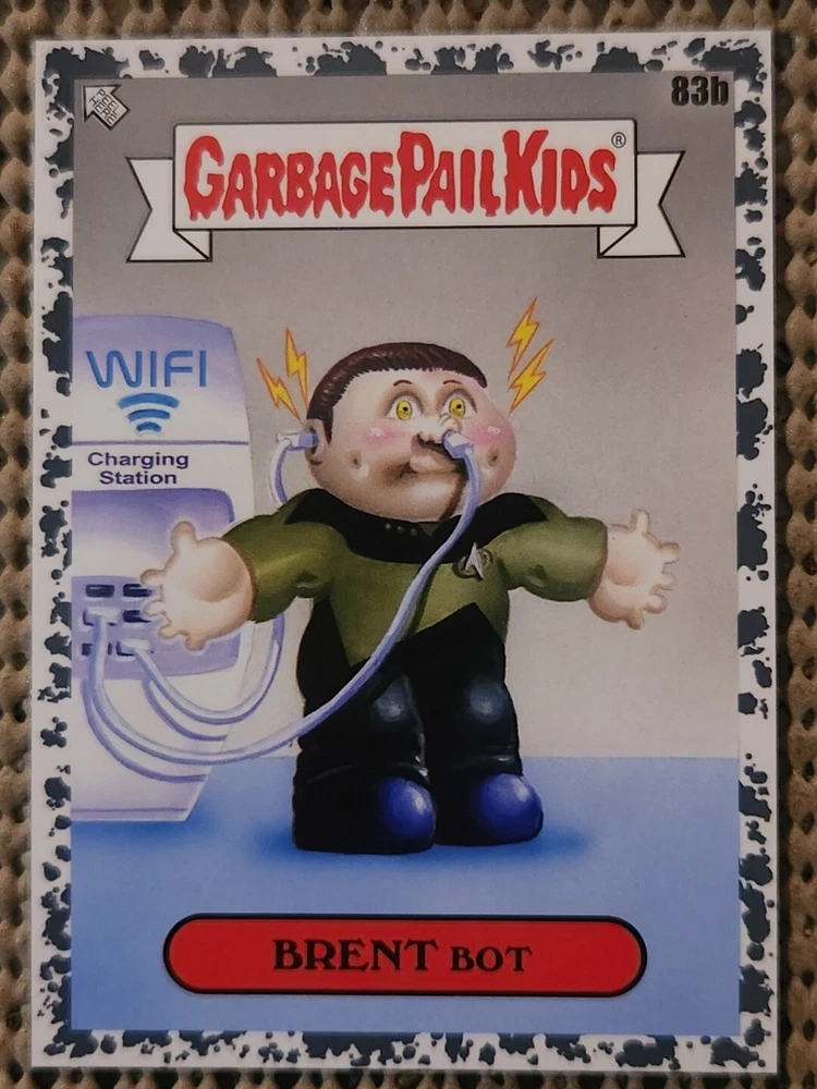 ONE (1) SINGLE CARD: ***The card is SHORT PRINT special insert chase card for the MOONROCK GREY BORDER PARALLEL SET *** >>> ONLY 199 PRINTED TOTAL <<< - BRENT BOT (#83b) 2023 INTERGOOLACTIC MAYHEM SERIES SP SHORT PRINT SPECIAL INSERT PARALLEL CHASE CARD STAR TREK DATA TV MOVIE PARODY ARTWORK TOPPS GPK GARBAGE PAIL KIDS PARODY ART UNIQUE RARE SUBSET HARD TO FIND NON-SPORTS COLLECTIBLE ART CARD GPK ORIGINAL ORIGINAL SERIES Garbage Pail Kids are also known as Les Crados, Sgorbions, Gang do lixo, Basuritas, La Pandilla basura, Garbage Gang, Garbage Pail Kids, Die total Kaputten Kids, and Bukimi Kun.