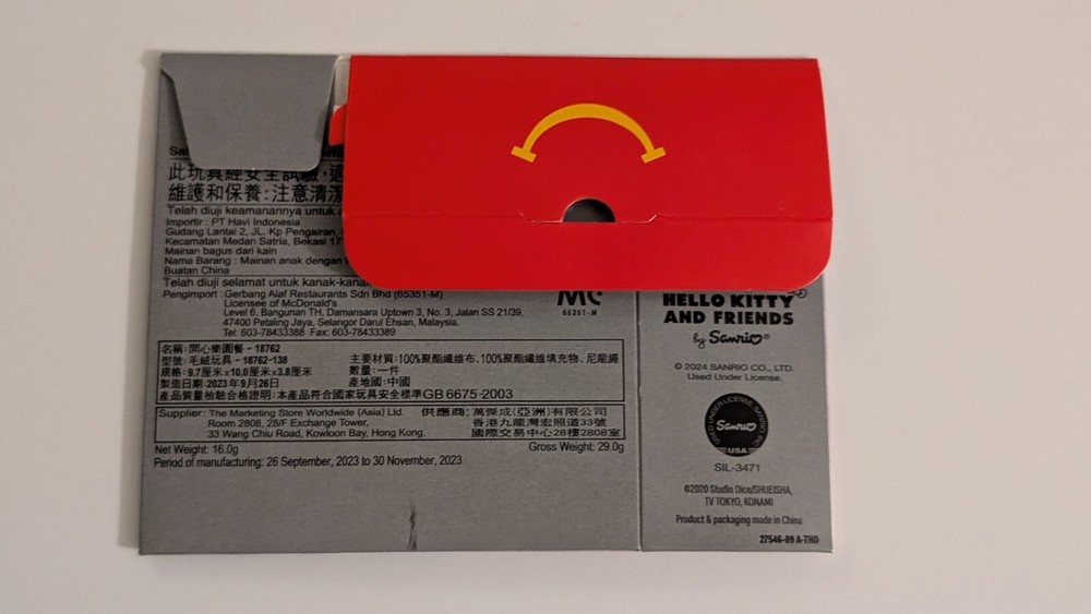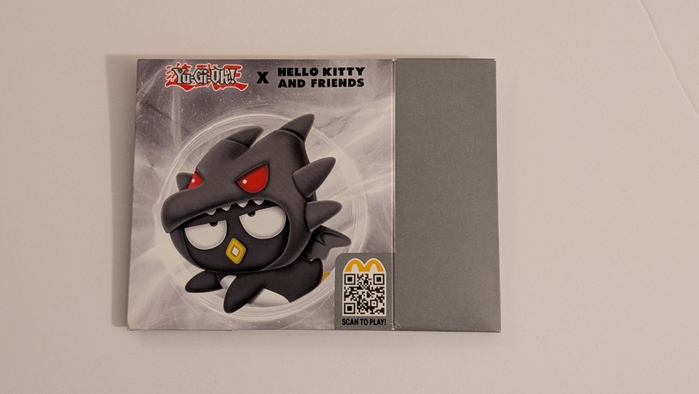 The product is a McDonald's Happy Meal toy collaboration between Yu-Gi-Oh and Hello Kitty featuring the character Badtz-Maru Red-Eyes Black Dragon. This limited edition character is part of a promotion that combines elements from both the Yu-Gi-Oh trading card game and the popular Sanrio character Hello Kitty, creating a unique and collectible item for fans of both franchises. New with box as pictured, box will be mailed flat and folded as pictured, shipping to US address only Happy Bidding!