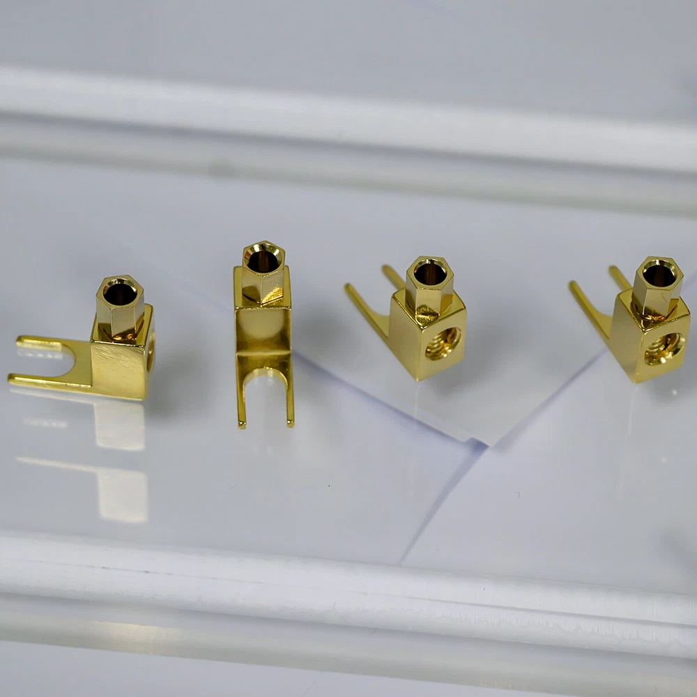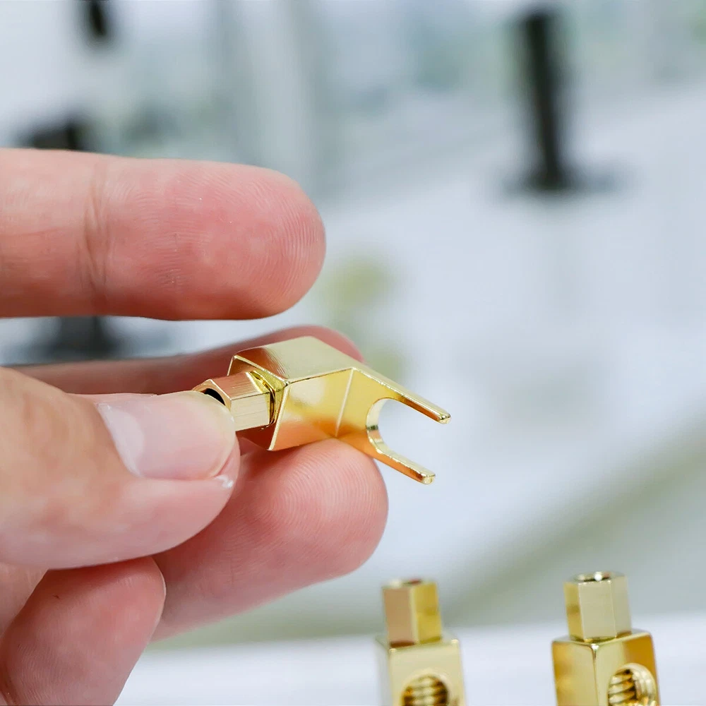 Store Categories Store Categories HiFi Power Cable US Version EU Version UK Version DC Cable Other HiFi Power Plug US Power Plug EU Power Plug UK Power Plug IEC Female Plug IEC Socket Power Distributors Other HiFi Interconnect Cable Speaker Cable RCA Cable RCA to XLR Cable XLR Cable Ethernet Cable Headphone Cable Jump Cable Tonearm Cable USB Cable Other HiFi Connector Banana Plug Y Spade Plug XLR Plug RCA Plug RCA Socket Binding Post Headphone Plug Adapter Other Bulk Cable Power Cable Interconnect Cable Accessories Audio RCA & XLR Cap Cable Splitter Knob Record Stabilizer Clamp Other HiFi Audio Isolation Feet TURNTABLE WEIGHT STABILIZER Other Banana to Spade Adapter Spade Fork Binding Post For Mcintosh Fisher Eico Adapter Product Description Size: 20 mm * 20 mm * 8 mm( 0.79in * 0.79in * 0.31in / L*W*H Inner Width: 6 mm (0.24in) Outer Width: 8 mm (0.31in) Depth: 10 mm (0.39in) 24 K gold plated and copper made, non-magnetic. For old style speakers and Accept different types of banana plugs. Converts amplifiers with screw type terminals to use standard banana plugs or bare cable. Also can be used for speaker spade to banana socket adapter. Accept cable diameter: 6mm Package:4 Pcs Banana to Spade Adapt Plugs PAYMENT TERMS SHIPPING TERMS RETURNS POLICY CONTACT US FEEDBACK PAYMENT TERMS 1. All payment should be completed within 3 business days after auction end. Unpaid Item Dispute will be reported to eBay if don't pay in 5 business days. SHIPPING TERMS 1. IMPORTANT: We ship to your eBay address. Please make sure your eBay address is correct. Buyer takes responsibility if eBay address is wrong. 2. Items will ship out within 1-5 business days after payment is received. 3. We provide free registered airmail, you can easily track the project. Please expect 15 to 25 business days for delivery. If you don't receive item after 30 days, please contact us, we'll investigate and solve the delivery issue including resend or refund. 4. Refund will be issued once we receive your returned items. 5. Buyer is responsible for all return shipping charges. RETURNS POLICY We accept product return with 30 days with picture assure product without any problem. Be sure to make order with confirmation before you pay it. We do not bear responsibility for mistake by customers. If there is any question or problem about your order. Leave message and get positive communication with us. See you! CONTACT US Customer satisfaction is our priority. If for any reason you're not completely satisfied with your purchase, please contact us immediately and we will do everything in my power to make it right. If you have any question or request, pleas e do not hesitate to contact with us via eBay Message. FEEDBACK Positive feedback will be left to you automaticaly when your feedback was received. It's our goal to offer you the best quality and service. Please kindly leave 5 star DSR (Detailed Seller Ratings) if you satisfied with our services and products. Please kindly contact us via eBay Message know your problem before you leave negative feedback. We'll try our best to ensure that all the problems you encounter will be solved immediately. Copyright © 2023 Dianxiaomi