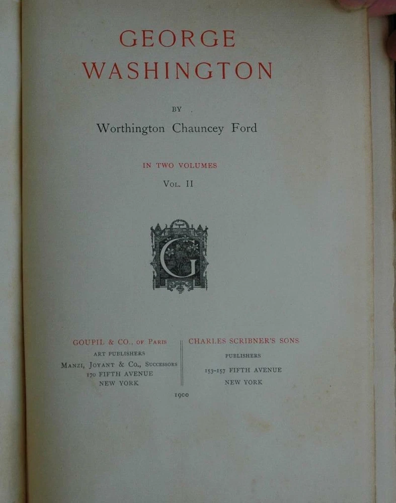 Offered For Sale is a Beautiful Leather 1900 2 Volume Set of "George Washington" by Worthington Chauncey Ford - published by Charles Scribner's Sons - this is noted as # 37 out of a Limited Edition of 1,250 Copies - other than a little fraying to the top of one of the spines, and a little scuffing to the bottom edge, the half leather covers and gilt are in excellent condition - there is foxing to the half title and title pages from the tissue overlays, which is the case with the other illustration pages as well, but the rest of the book has clean pages, tight binding and no writing other than a price and date on inside blank flyleafs - very nice copies of hard to find books Beautiful Leather 1900 2 Volume Set "George Washington" by Ford - Limited # 37 Beautiful Leather 1900 2 Volume Set "George Washington" by Ford - Limited # 37 Click images to enlarge Description Offered For Sale is a Beautiful Leather 1900 2 Volume Set of "George Washington" by Worthington Chauncey Ford - published by Charles Scribner's Sons - this is noted as # 37 out of a Limited Edition of 1,250 Copies - other than a little fraying to the top of one of the spines, and a little scuffing to the bottom edge, the half leather covers and gilt are in excellent condition - there is foxing to the half title and title pages from the tissue overlays, which is the case with the other illustration pages as well, but the rest of the book has clean pages, tight binding and no writing other than a price and date on inside blank flyleafs - very nice copies of hard to find books FLORIDA RESIDENT MUST PAY 7% STATE SALES TAX BUB2101 Shipping Items to continental US will be send via USPS media mail or Parcel Post unless other arrangements are made. Handling time is up to 4 business days prior to shipping. There are many expenses involved in shipping your product safely including padded mailers, bubble wrap, peanuts, tape, FRAGILE stickers, and in most cases insurance since insurance is now seller's responsibility. Understand that shipping costs may reflect a charge for these items. It is also sometimes difficult to estimate shipping costs before the item is actually packaged up. If you feel you have been overcharged, please contact me before leaving negative feedback. If there is a large discrepancy, I will make an adjustment, often before you ask! Terms of Sale Full refunds are available if not satisfied. Item must be returned in same condition as shipped. Kindly contact me immediately should you in any way be unhappy with your purchase, as I will make every effort to correct the situation, as evidenced by my feedback track record. Get images that make Supersized seem small. Showcase your items with Auctiva's Listing Templates! THE simple solution for eBay sellers. Track Page Views With Auctiva's FREE Counter