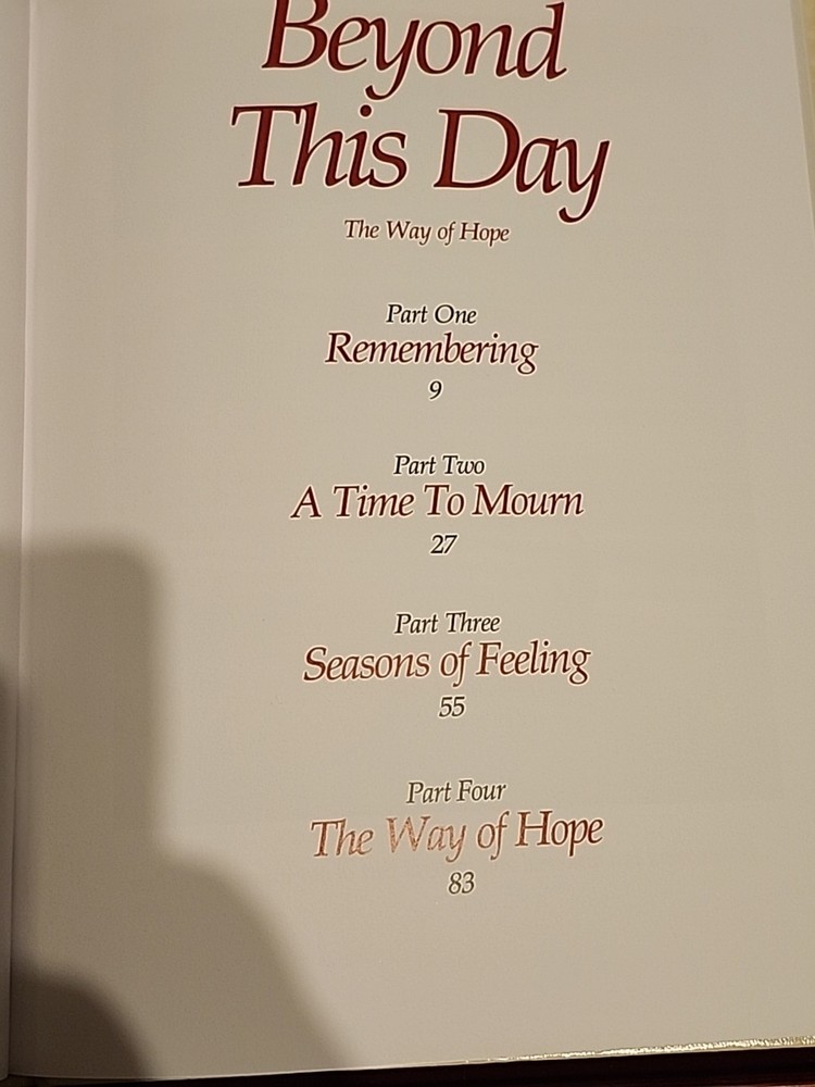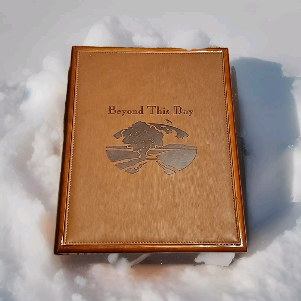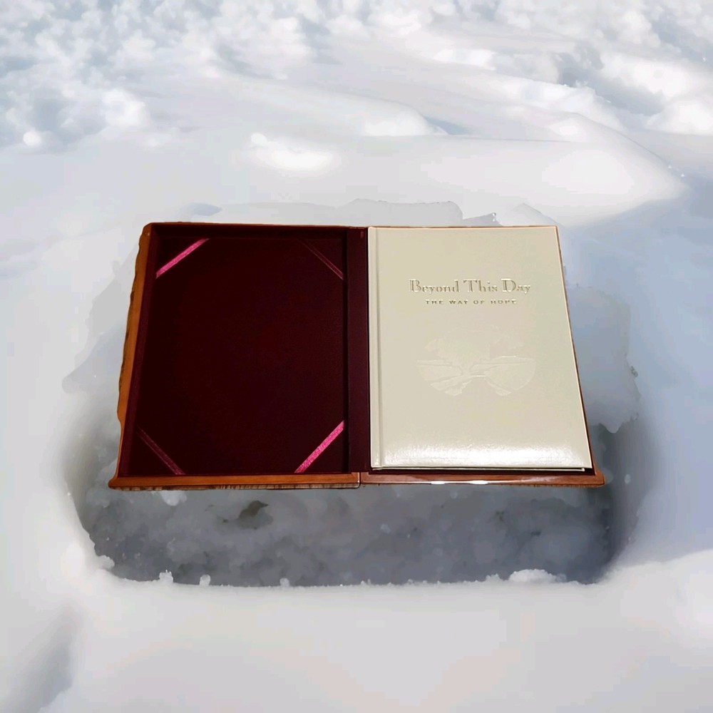 There's writing on the front page please take a look at the photos thank you. The "Beyond this Day The Way Of Hope Memorial Book Keepsake Box Set" is a collector's edition historical book series written in English. This leather-bound memory book is personalized, featuring a signed inscription. With 95 pages, it is designed for adults interested in religious and spiritual topics. The box set includes a nonfiction narrative on the theme of hope, with a unit weight of 30 oz and dimensions of 10" in length, 12" in height, and 8" in width.