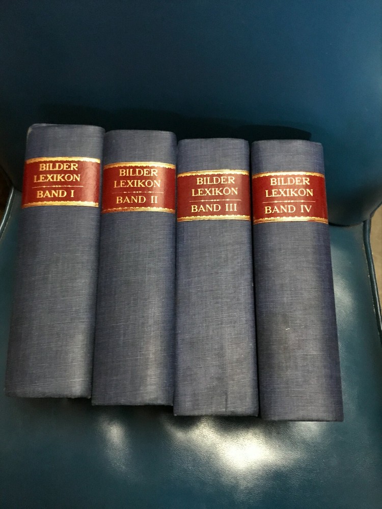 UP FOR SALE IS Bilder-Lexikon Kulturgeschichte 1928 4 VOLUME SET!!!! A GREAT ADDITION TO ANY COLLECTION. THIS BOOK IS PRE OWNED BUT IN GOOD CONDITION. PLEASE SEE ALL PICTURES FOR CONDITION. SLIGHT ODOR FROM STORAGE. HAS WRITING ON INSIDE & BACK COVER AS SHOWN. WILL BE SHIPPED USPS MEDIA MAIL. FEEL FREE TO MESSAGE WITH ANY QUESTIONS!!!!