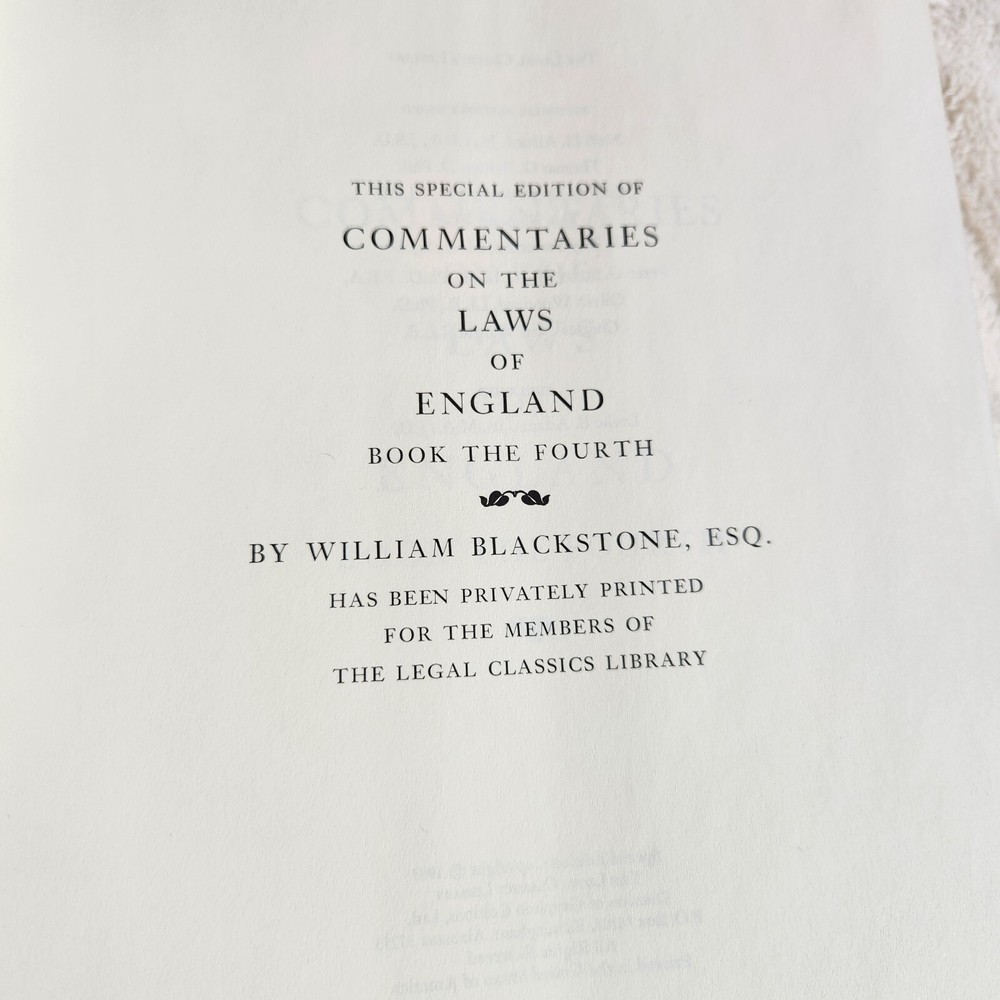Blackstone's Laws of England - 4 Vol Leatherbound Set Legal Classics Library (1983, Hardcover). Ships by USPS Media Mail....