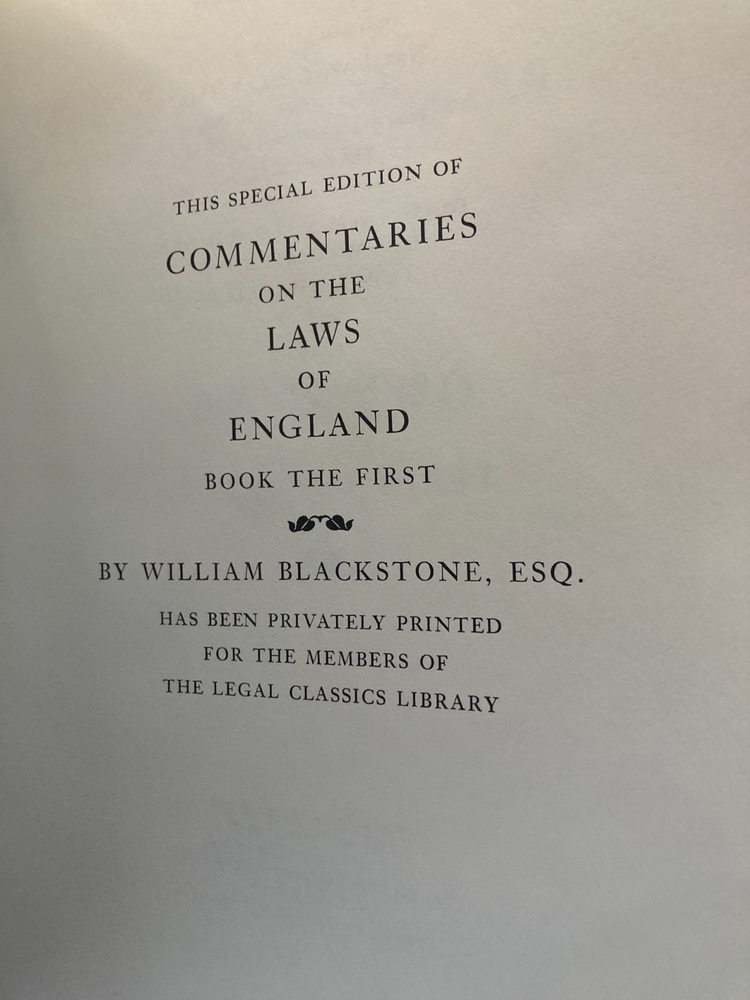 Blackstone's Laws of England - 4 Vol Leatherbound Set Legal Classics Library 1983. VGC. Light wear only....