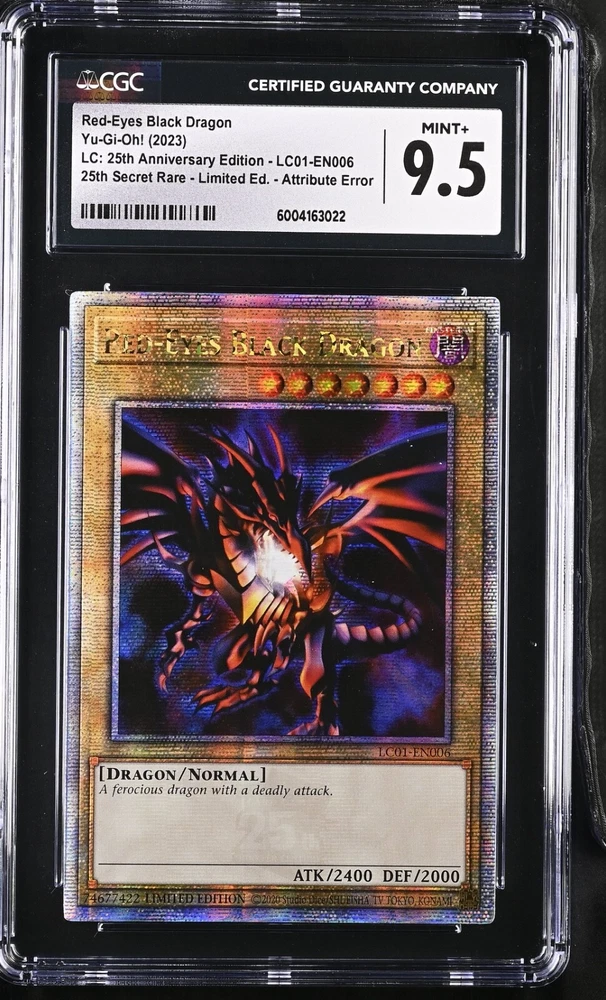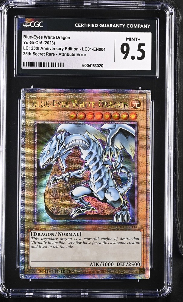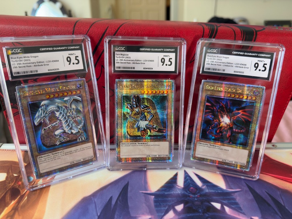 PSA: Take home this amazing CGC 9.5 MINT+ SET of 3 graded slabs. 3 Quarter Century Secret Rares from Legendary Collection - Red Eyes Black Dragon, Blue Eyes White Dragon, and Dark Magician! Mint condition, beautiful, and all the same grade make these a perfect gift set for anyone collecting Yugioh slabs, or the high rarities of these classic monsters, all at a great price. Don't miss out!