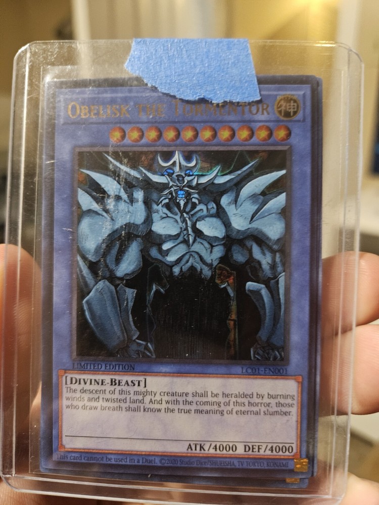 This collectible card game features two powerful cards: Blue Eyes White Dragon and Obelisk The Tormentor. Both cards are highly sought after by collectors and players alike. The Blue Eyes White Dragon is a legendary creature with devastating fire breath and razor sharp claws. Obelisk The Tormentor is a fearsome monster with the ability to drain the life force from its victims. Both cards are a must-have for any serious collector or player.