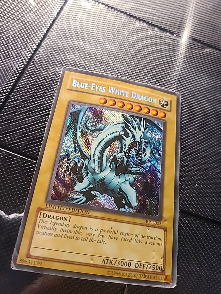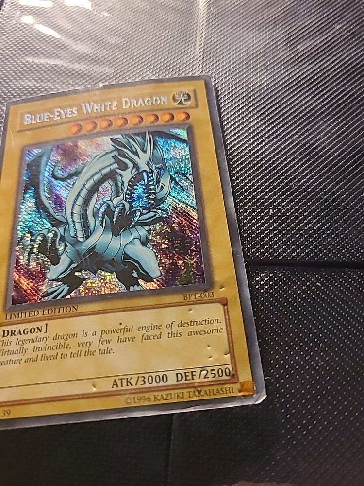 This Yu-Gi-Oh! TCG card is a must-have for any collector! The Blue Eyes White Dragon BPT-003 card features a rare holofoil Shift Misprint and is in excellent condition. With its blue color and iconic card name, this card will be a valuable addition to any collection. Whether you're a seasoned collector or just starting, this card is a great find. Don't miss out on the opportunity to add it to your collection!