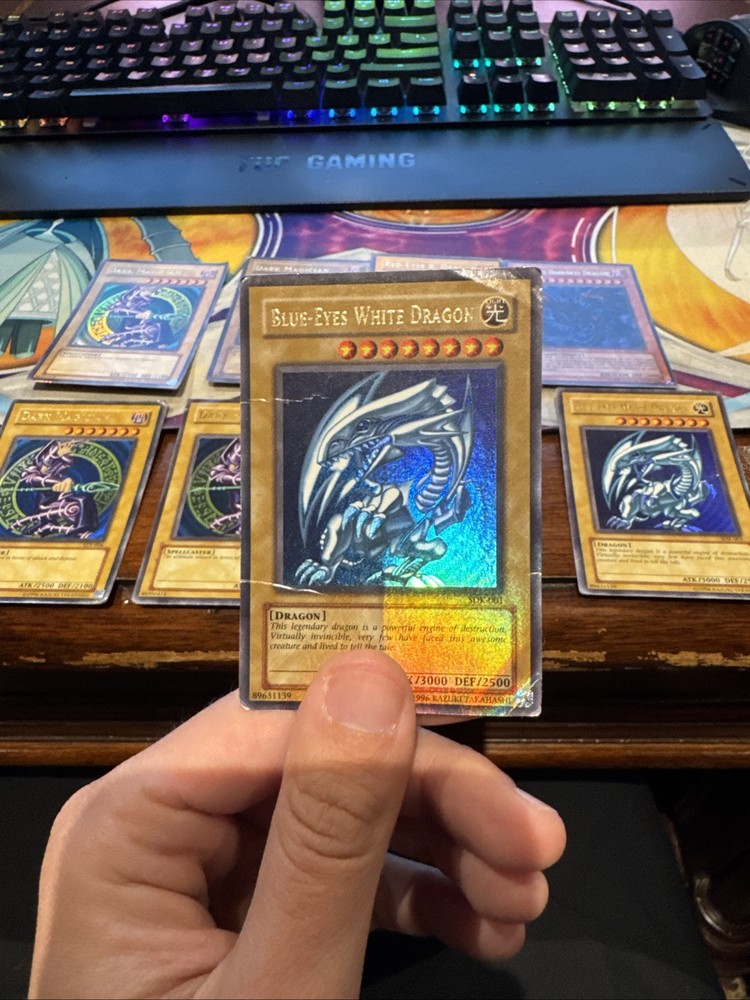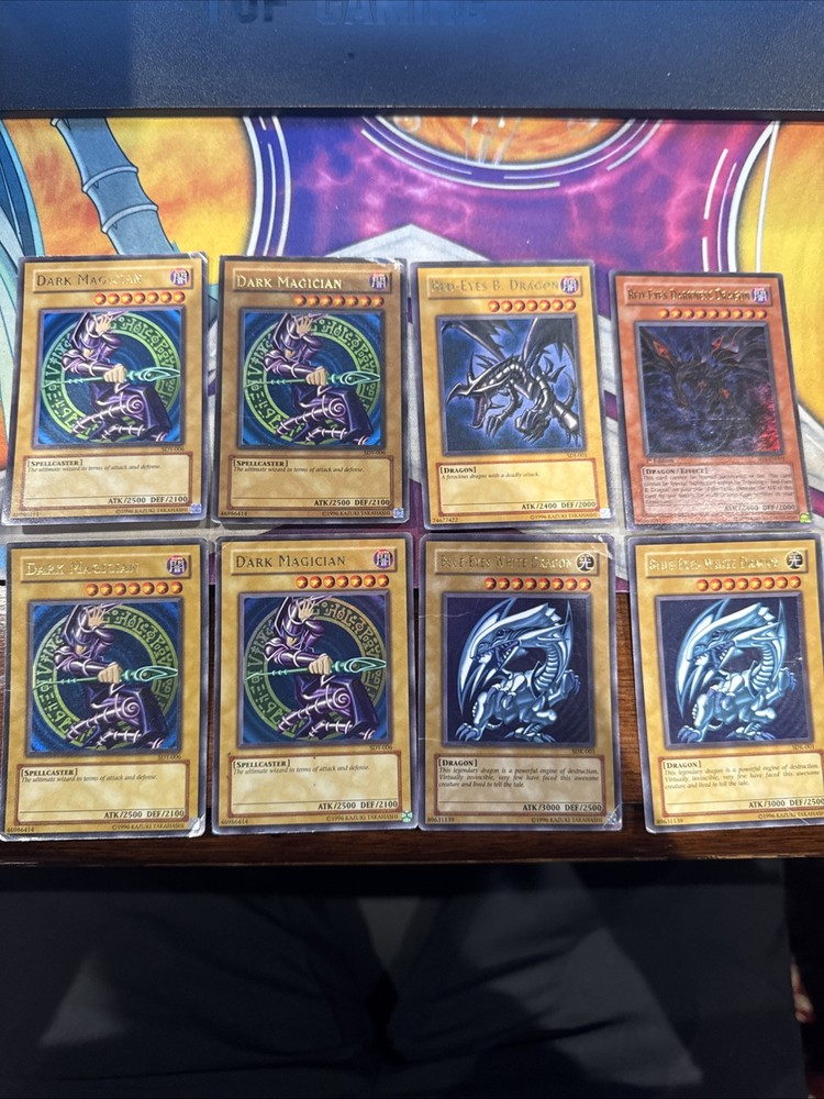 Blue eyes white dragon and dark magician lot plus two extra cards