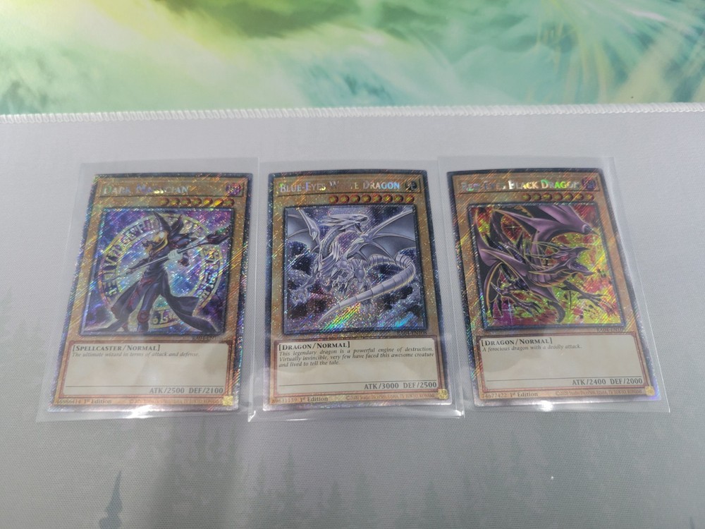 The product is a Blue Eyes White Dragon Dark Magician Red Eyes Platinum Secret Rare Yugioh card featuring a Dark Magician Girl from the Yu-Gi-Oh! TCG. This Japanese-sized card has a Dark attribute and belongs to the Platinum set, manufactured by Konami in 1996. With an Attack/Power of 3000 and Defense/Toughness of 2500, this Monster card is a speciality in Dragons and Spellcasters, making it a valuable collectible for fans of the game. It is classified as a Common rarity and is in English language with a Regular finish.