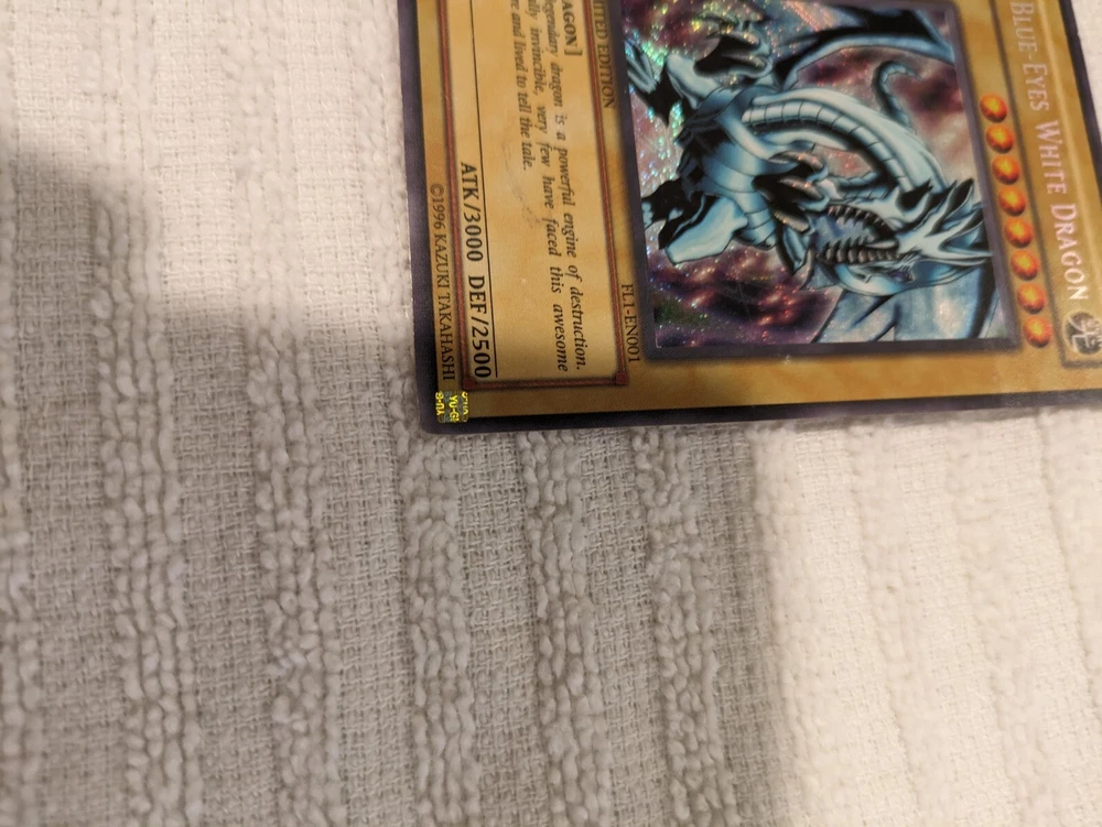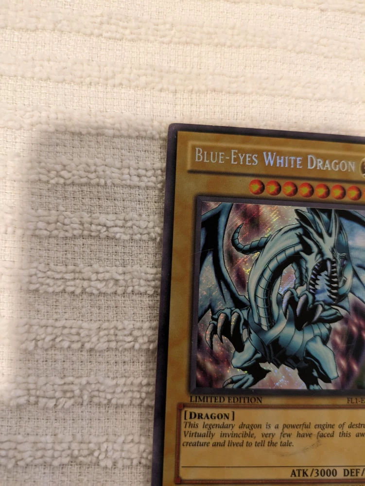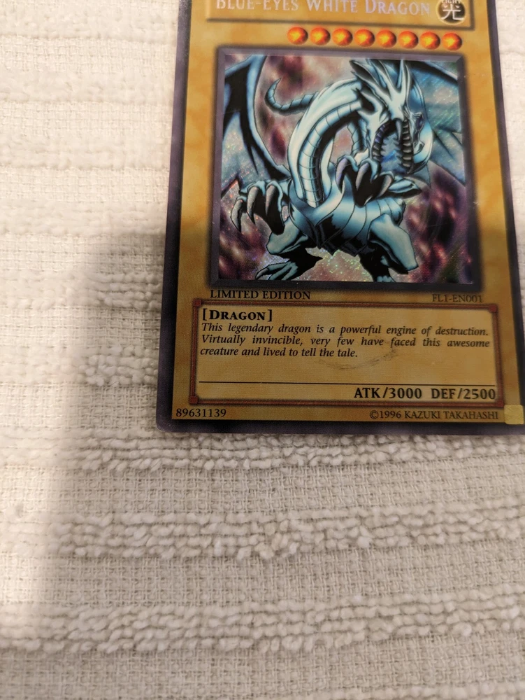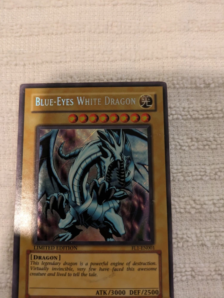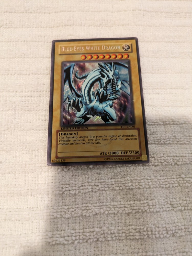 Blue Eyes White Dragon FL1-EN001 Secret Rare Limited Edition Yugioh. This item has normal wear. Please see pictures for more details and condition.