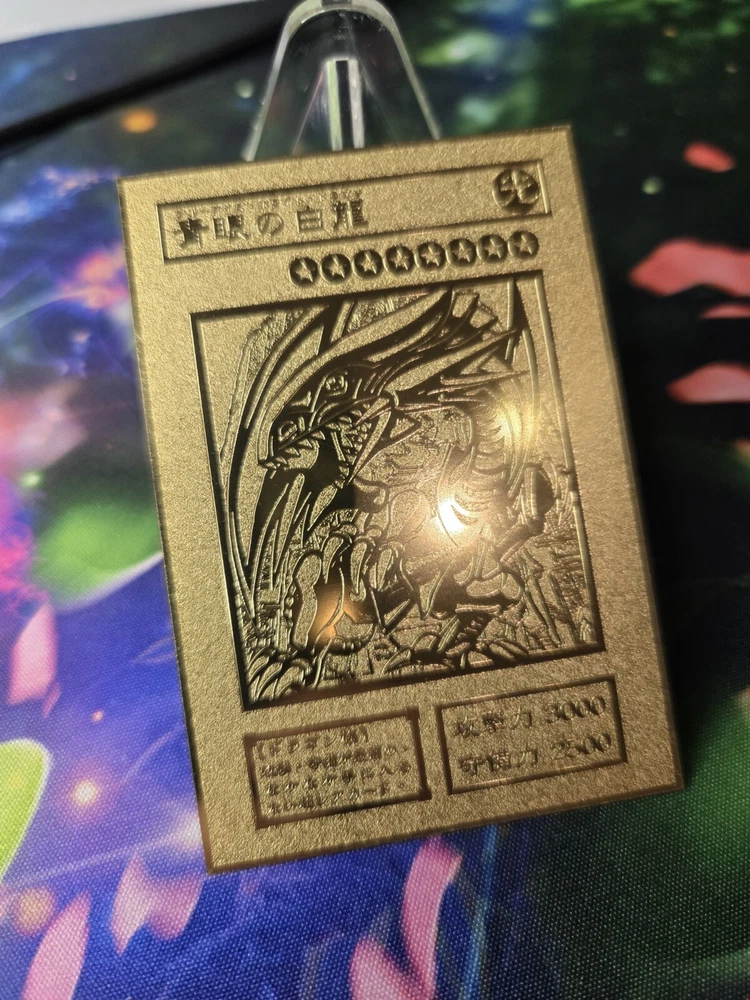 This is not an official yugioh card. This Blue Eyes White Dragon Gold Metal Token Card is a must-have for any Yu-Gi-Oh! TCG collector. The card features a rare Japanese card size with a stunning blue color and dragon creature/monster type. It is made of high-quality metal material and is perfect for players aged 6 and above. The card is a great addition to any collection and is not vintage. It was manufactured in the United States and is perfect for anyone who loves collectible card games. Don't miss out on the chance to add this rare and unique card to your collection!