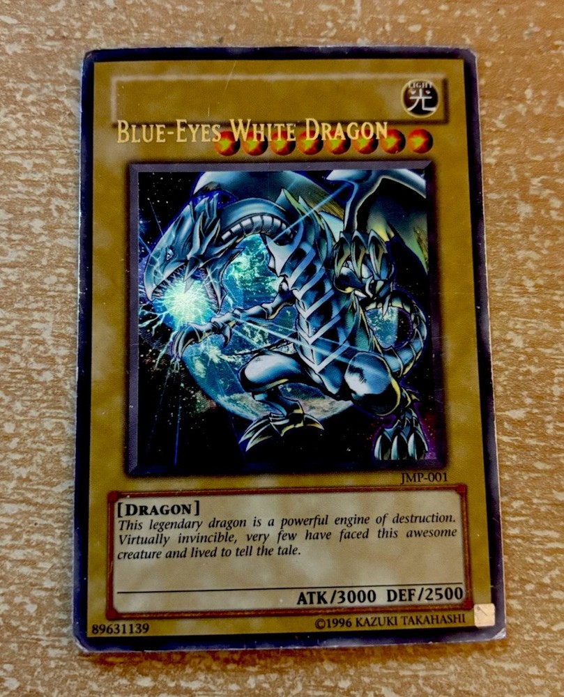 Blue Eyes White Dragon misprint. JMP-001 (STAMP ERROR). Condition is Ungraded. Shipped with USPS Ground Advantage.