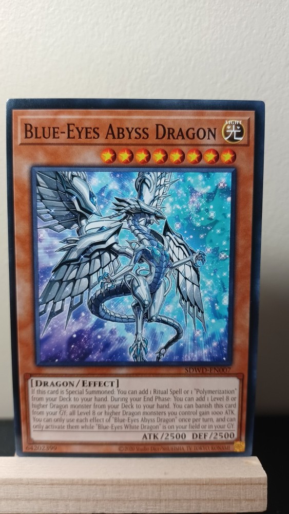 Blue-Eyes Abyss Dragon 1st edition Common (Misprint, no 1st edition stamp) from Structure Deck: Blue-Eyes White Destiny in NM Condition. Please see pictures and feel free to ask any questions prior to purchase. All orders usually ship within 24 hours except on days USPS is closed. Most orders under $20 will ship via eBay standard envelope, orders over $20 will ship via USPS Ground Advantage. We do everything we can to ensure your purchase arrives in a timely manner and in the same condition shown on the listing. Please check out our eBay store as well for more cards and discounts.