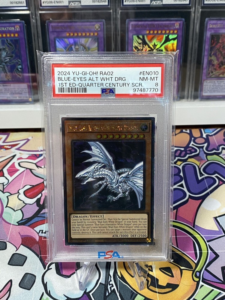 This Blue-Eyes Alternative White Dragon in Quarter Century Secret Rare is absolutely stunning! The holographic foil and premium 1st Edition finish make it a must-have for collectors. The card arrived in perfect condition, and the seller was responsive. A true gem for any Yu-Gi-Oh! fan—highly recommend adding it to your deck or display!
