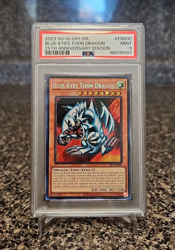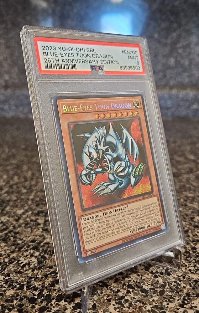 PSA 9 Mint Blue-Eyes Toon Dragon from the Yu-Gi-Oh! TCG 2023 Spell Ruler 25th Anniversary Edition set! Card will ship with a graded card sleeve and bubble wrap to ensure safe shipping!...