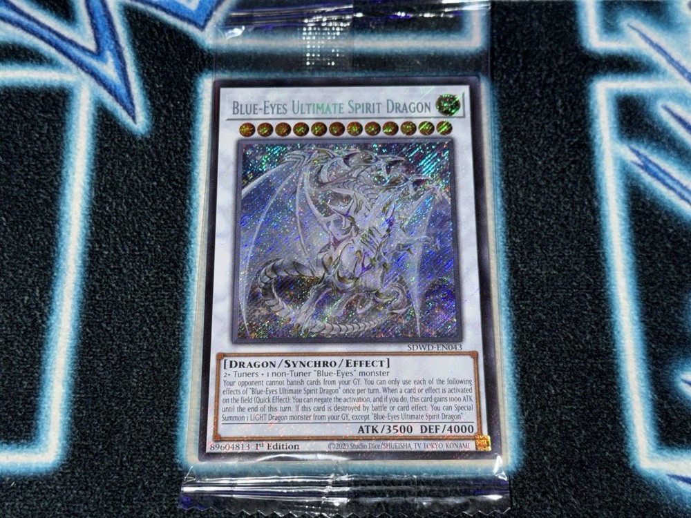 The Blue-Eyes Ultimate Spirit Dragon from the Yu-Gi-Oh! TCG is a highly sought-after collectible card known for its powerful attributes and rarity. This card, part of the White Destiny structure deck released in 2025 by Konami, features a Japanese size, holo finish, and English language text. With an impressive defense and attack power of 4000 and 3500 respectively, this Secret Rare Dragon card is a valuable addition to any collection for fans and players alike.