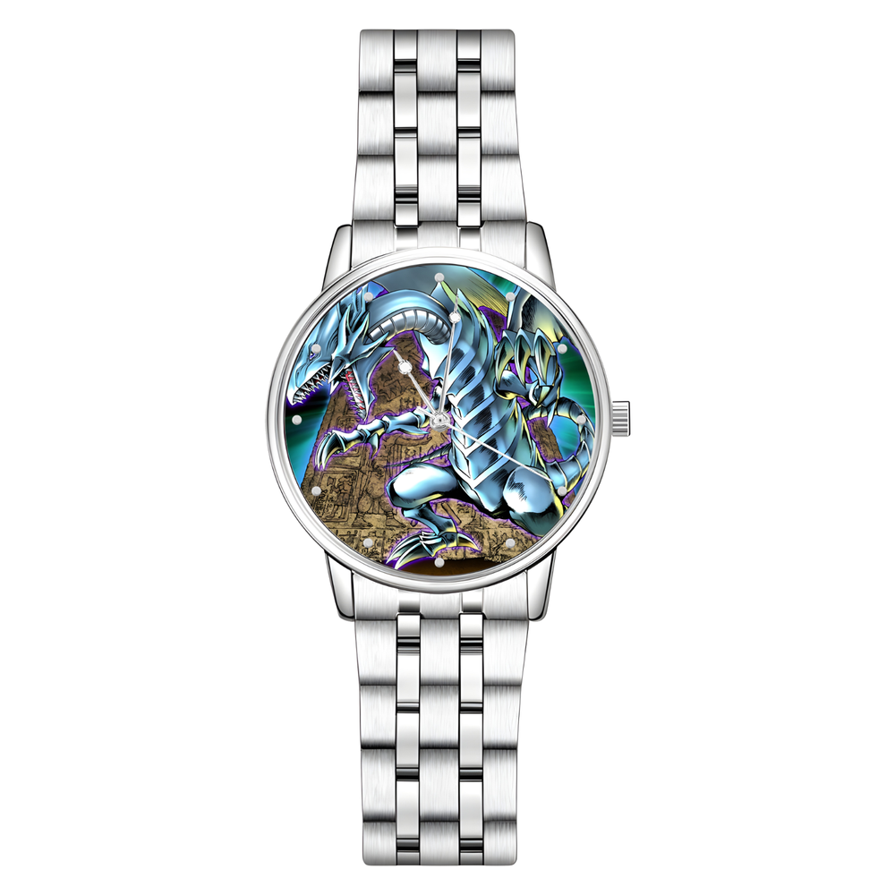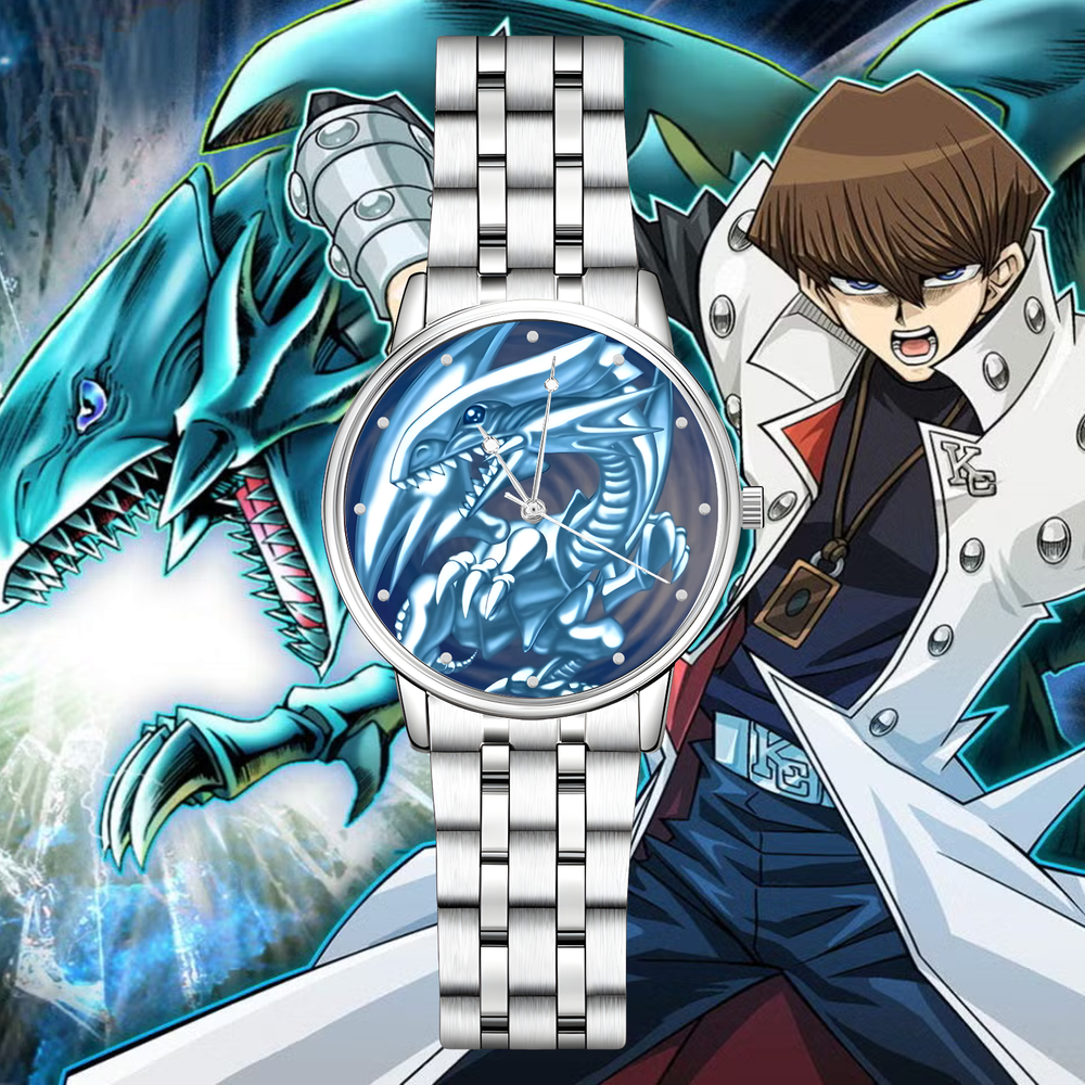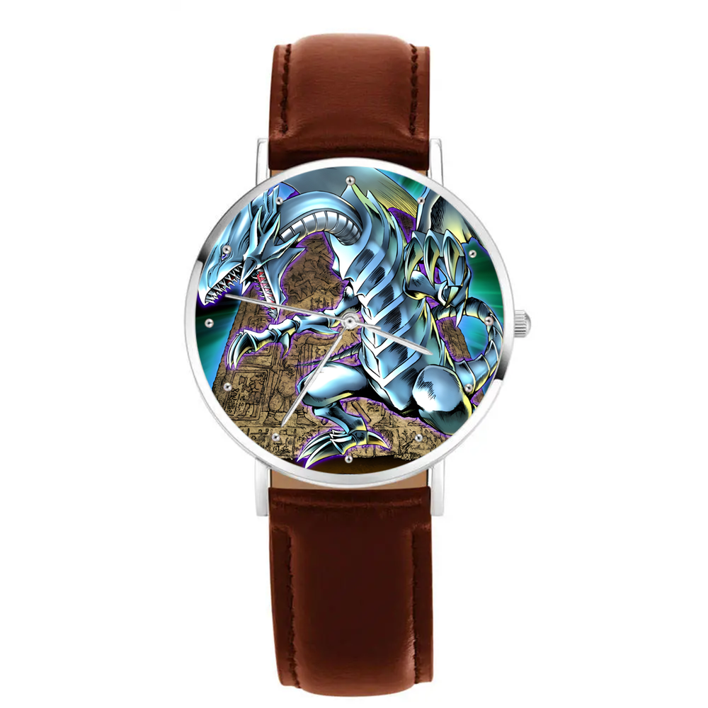KaibaCorp approved. Unleash the legendary might of the Blue-Eyes White Dragon with this collection of watches. A stunning tribute to the ultimate dragon lineage from Yu-Gi-Oh! this collection includes some of the most popular trading card artwork and a few fan favorite alternates. Each piece stands as a symbol of raw power, duelist prestige, and Kaiba-level intensity. Whether you enjoyed the anime or played the trading card game, this watch captures the legacy of a titan, an icon of bold design and timeless spirit. If you'd like to replace the engraving on the back with a custom message (max 50 characters), please leave it in the "Note to Seller" or send it to me in a direct message along with the font of choice. The available fonts are: Times New Roman Apple-Chancery Allura-Regular