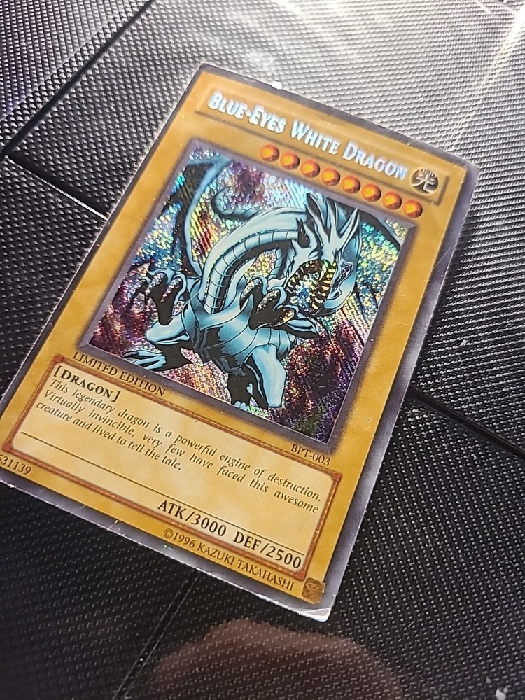 This limited edition Yu-Gi-Oh! TCG card features the iconic Blue Eyes White Dragon with a secret rare rarity. The card is in Japanese size and has a foil finish, making it a must-have for any collector. With an attack power of 3000 and a defense/toughness of 2500, this card is sure to be a valuable addition to any deck. The card is manufactured by Konami and is in English language. It belongs to the Normal card type and has the card number BPT-003. This card is perfect for fans of the Yu-Gi-Oh! TCG game who are looking for a rare and powerful card to add to their collection.