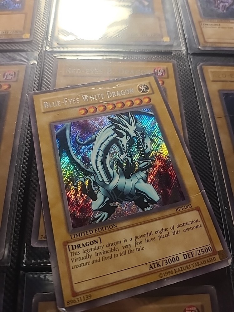 This Blue-Eyes White Dragon BPT-003 card is a must-have for any Yu-Gi-Oh! TCG collector. With its Secret Rare rarity and Blue color attribute, this card is a valuable addition to any collection. The card name is Dragons and it belongs to the Collectible Card Games category under Toys & Hobbies. The card is perfect for those looking to enhance their game or add to their collection. It is a great find for fans of the Yu-Gi-Oh! TCG and collectors alike. Get your hands on this rare card now and add it to your collection.