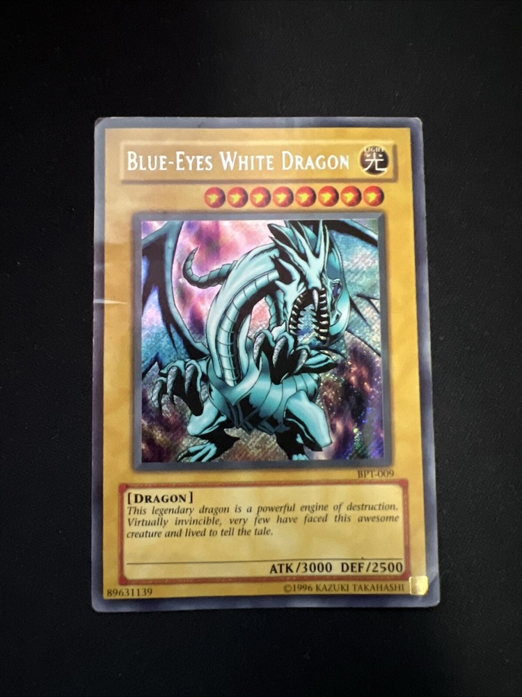The Blue-Eyes White Dragon BPT-009 from the 2003 Collectors Tin is a highly sought-after card in the Yu-Gi-Oh! TCG. This Secret Rare Limited Edition card boasts impressive stats with an Attack/Power of 3000 and Defense/Toughness of 2500, making it a formidable creature to have in any player's deck. Manufactured by Konami, this English-language card is part of the Attribute/MTG:Color category of Light and falls under the Creature/Monster Type of Dragon. Its rarity and features add to its appeal for collectors and players alike.