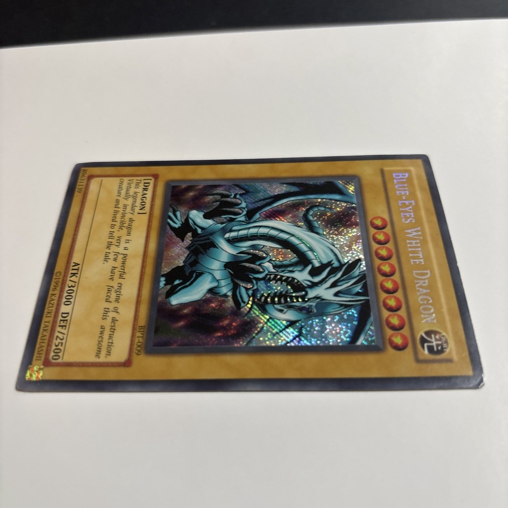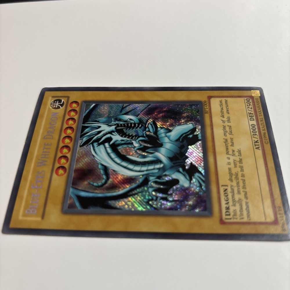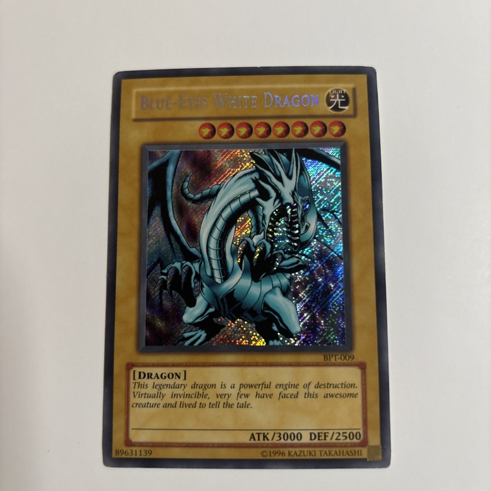 The Blue-Eyes White Dragon BPT-009 Yu-Gi-Oh! card is a Secret Rare Normal card from the Yu-Gi-Oh! TCG, featuring the character Seto Kaiba and a Dragon type creature. This collectible card has a Holo finish, making it a highly sought-after addition to any Yu-Gi-Oh! card collection. With its striking design and rarity, the Blue-Eyes White Dragon card is sure to be a valuable addition to any player's deck.