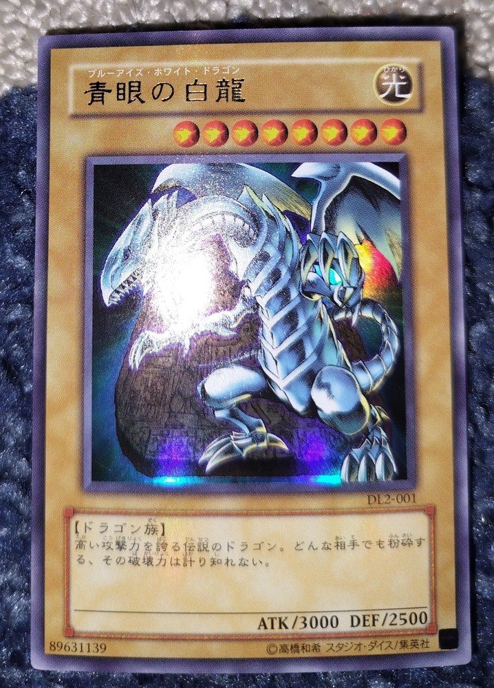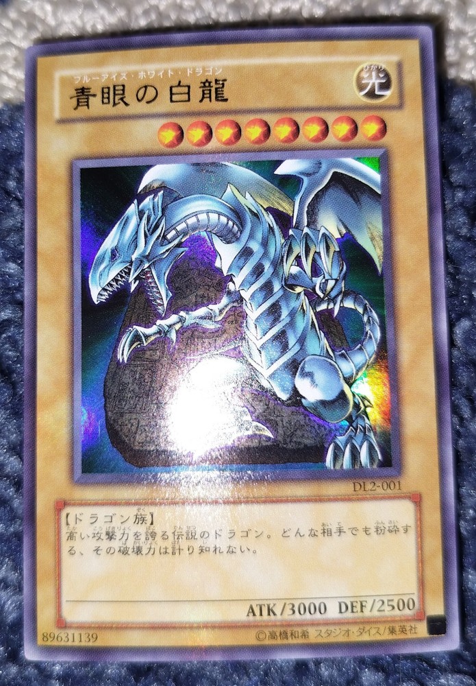 This is a Japanese Yu-Gi-Oh! TCG card from the - Yugi - set, specifically the Blue-Eyes White Dragon with card number DL2-001. It is an Ultra Rare vintage card manufactured in 2001. The card is in near mint or better condition and features the iconic Blue-Eyes White Dragon character.