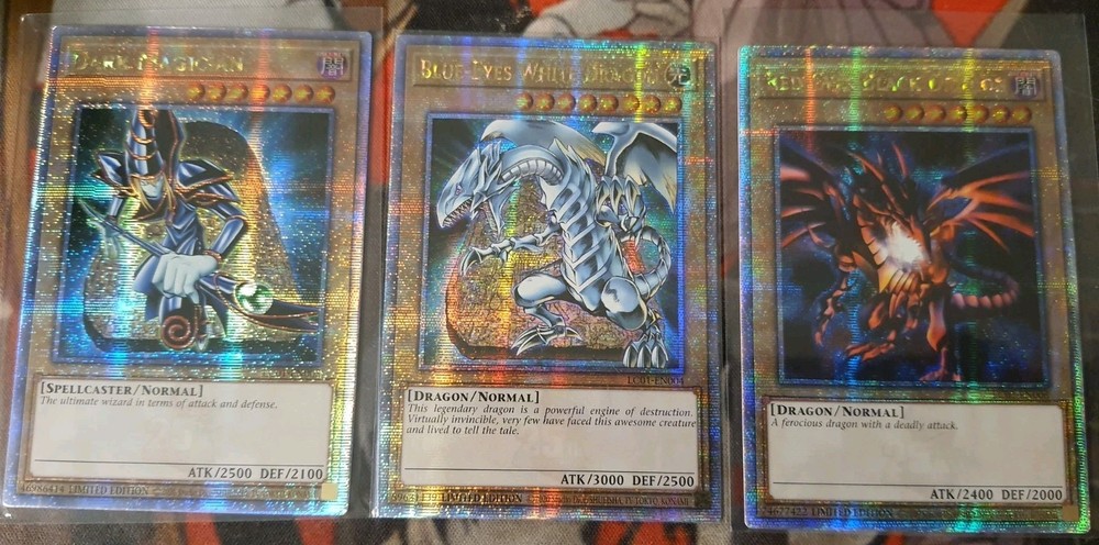 This set is all near mint and in the coveted quarter century rarity. They are the artworks for the 2nd and 3rd iterations of these nostalgic cards. I loved that they continued to support these cards through the years and seeing them in this rarity feels special to me. Collect all the Quter Century cards while you still can! Fans are going to scoop these cards up and keep them in their collection. Thank you for your interest. Check out my other cards and sets!