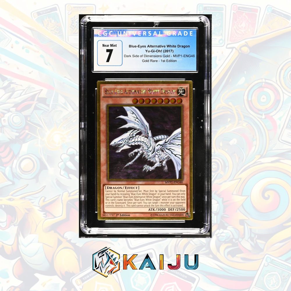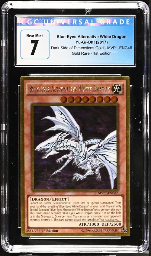 The Blue-Eyes White Dragon Dark Side of Dimensions Movie Pack Gold Edition is a highly sought-after Yu-Gi-Oh! TCG card featuring a Dark Dragon creature type. This Gold rarity card is from the set "The Dark Side of Dimensions Movie Pack Gold Edition" and is graded by professional graders. With its unique attributes and rarity, this card is a valuable addition to any collector's deck.