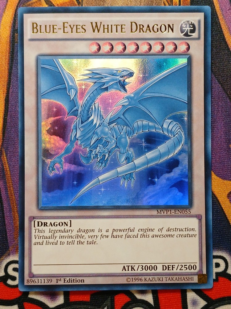 Blue-Eyes White Dragon (Faded) - MVP1-EN055 - Ultra - 1st Ed - NM - Yugioh Condition: NM NOTES ON CARD: The card in these photographs will be the exact card you receive once purchased. Please review photographs and use your own discretion before purchasing. SHIPPING INFORMATION: Cards are shipped safely in plastic sleeve AND hard-plastic top loader via regular letter mail. I’m usually able to ship out the VERY NEXT business day. NOTE: I ship from Canada. International buyer responsible for any duties, import fees, or taxes. OTHER INFORMATION: PLEASE LEAVE FEEDBACK once you receive the item and let me know how I did! THANK YOU! CARD GRADING: Near Mint (NM): NM condition show minimal to no wear. Excellent (EX) : EX condition may have minor wear, or even just slight scuffs, scratches, minor creases on card or borders but there are no major defects. Light Play (LP) : LP condition show moderate wear. May have moderate border wear, mild corner wear, minor water damage, minor scratching or scuffing, creases or whitening, or minor dirt buildup. Played (P): P condition show obvious wear. Played condition can include cards that have creasing or border wear.