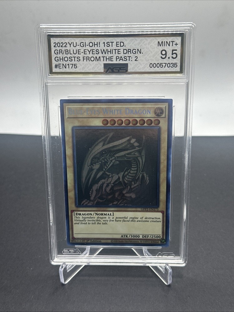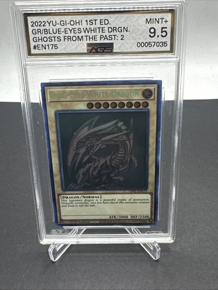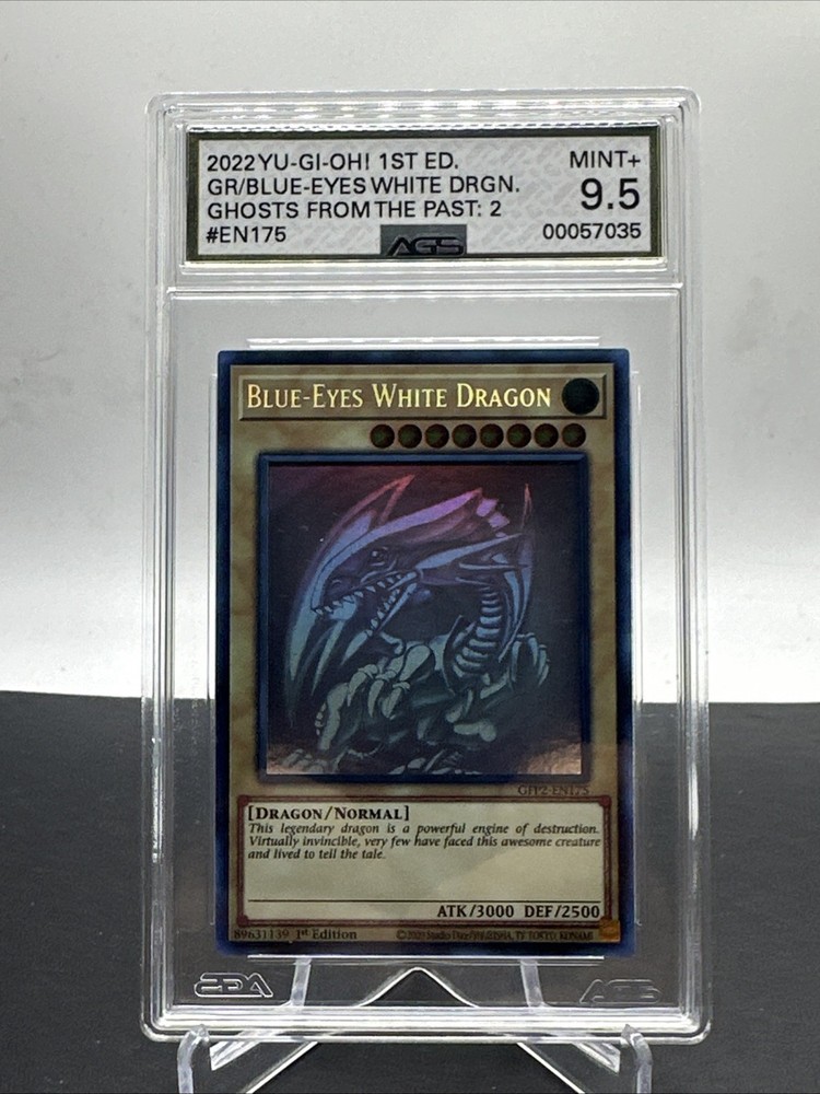 The Blue-Eyes White Dragon GFP2-EN175 card from the Ghosts from the Past: 2nd Haunting set is a highly sought after collectible in the Yu-Gi-Oh! Trading Card Game. This rare Ghost Rare card features a Light attribute, with high Defense and Attack powers of 2500 and 3000 respectively. Manufactured by Konami, this 1st Edition English language card is a valuable addition to any collector's deck. With its striking design and impressive stats, the Blue-Eyes White Dragon is a must-have for fans of the game.