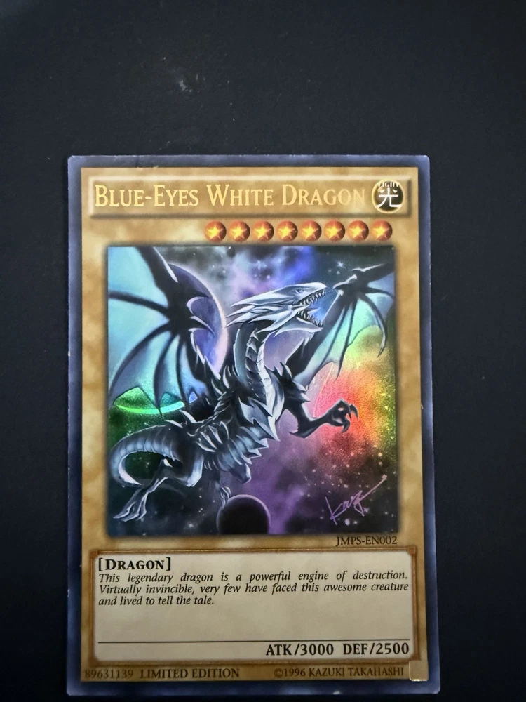 Blue-eyes white dragon jmps-en002 in very good condition, been sitting in a ziplock bag for years since I didn’t play yugioh when I got them with shonen jump.