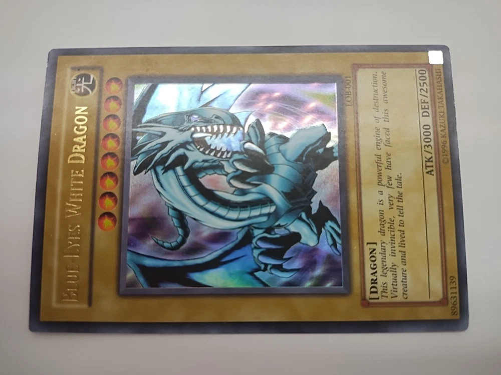 Dive into the realm of high-flying fantasy with the iconic Blue-Eyes White Dragon card from The Legend of Blue Eyes White Dragon-Unlimited Edition set. This Ultra Rare card, featuring the legendary dragon with an attack prowess of 3000 and a defense strength of 2500, is a must-have for any Yu-Gi-Oh! TCG enthusiast. Adorned with the iconic artwork by kazuki takahashi, this English-language card is numbered LOB-001 and hails from the year 1996, adding a touch of nostalgia to your collection. Crafted by Konami and originating from Belgium, the Blue-Eyes White Dragon card is a non-autographed, normal type card that comes in a standard Japanese card size. It's suited for ages 6 and up, making it a versatile addition to both young and seasoned players' decks. This card encapsulates the spirit of the game, providing both a strategic edge and a piece of Yu-Gi-Oh! history.. Please review all photos for condition. Please ask all questions prior to placing your order! Be sure to check out our eBay store for other toys and collectibles! toymeistertoys on eBay **Follow Toymeister Toys on Facebook and Instagram for even more toys and collectibles!** PAYMENT: Payment is expected within 48 hours after winning the auction. PAYPAL is the ONLY method of payment. We reserve the right to relist any items that have not been paid for within 3 days of the end of the auction. We do not have time to track you down for payment. Our eBay is set so that it will open an unpaid item case automatically after 3 days. SHIPPING POLICY: General Information : We put a three-day handling time on auctions, but most are mailed out the morning after payment unless the next day falls on a Saturday or Sunday. Combined Shipping for Buyers Inside the United States : We will combine shipping on our listings. There are very few exceptions (i.e. if the item is unusually large). For combined shipping, use the ADD TO CART button for your items. Once items are in your cart, go to your shopping cart and use the REQUEST TOTAL FROM SELLER button located at the top right of the first item in your cart. We will then send you an invoice to pay for the items with the combined shipping rate included. Combined Shipping for Buyers Outside the United States : We only ship using the Global Shipping Program. Currently, the Global Shipping Program does not allow buyers to combine shipping. If international buyers are interested in more than one item, please contact us for details. Local Pickup : We will allow local pickup on ANY of our listings. If you wish to avoid shipping costs, AFTER you win the auction send us a message letting us know you would like to pick the item up and we will invoice you for the cost of the item minus the shipping as well as provide instructions for pickup. Items to be picked up MUST still be paid for through PAYPAL after winning the auction. We do NOT accept payment in person. Dive into the realm of high-flying fantasy with the iconic Blue-Eyes White Dragon card from The Legend of Blue Eyes White Dragon-Unlimited Edition set. This Ultra Rare card, featuring the legendary dragon with an attack prowess of 3000 and a defense strength of 2500, is a must-have for any Yu-Gi-Oh! TCG enthusiast. Adorned with the iconic artwork by kazuki takahashi, this English-language card is numbered LOB-001 and hails from the year 1996, adding a touch of nostalgia to your collection. Crafted by Konami and originating from Belgium, the Blue-Eyes White Dragon card is a non-autographed, normal type card that comes in a standard Japanese card size. It's suited for ages 6 and up, making it a versatile addition to both young and seasoned players' decks. This card encapsulates the spirit of the game, providing both a strategic edge and a piece of Yu-Gi-Oh! history..