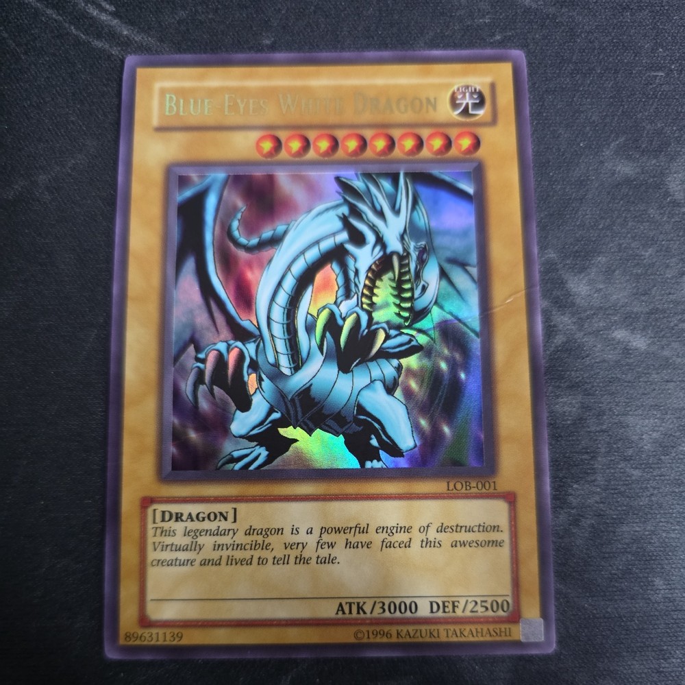 Elevate your Yu-Gi-Oh! TCG collection with the iconic Blue-Eyes White Dragon from The Legend of Blue Eyes White Dragon set. Card number LOB-001 features the formidable creature with an attack power of 3000 and a defense strength of 2500, capable of tipping the scales in your favor. The card's Ultra Rare rarity and the fact that it's an Unlimited Edition make it a sought-after piece for collectors and players alike. With its English language print and manufactured by Konami, this Blue-Eyes White Dragon card possesses the quality and prestige expected from a staple of the Yu-Gi-Oh! universe. The card's attributes, including its Light attribute and Normal card type, complement any deck or display, ensuring it stands out in your collection or during gameplay. This legendary dragon is not just a card; it's a statement of power and collectibility.