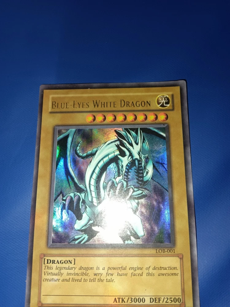 Experience the thrill of adding the iconic Blue-Eyes White Dragon LOB-001 to your Yu-Gi-Oh! TCG collection. This Ultra Rare card showcases the majestic Seto Kaiba and features the legendary dragon in stunning holographic detail. The classic white and blue color scheme of this card is a staple for any serious collector or player, symbolizing the purity and power of the game's earliest sets. Crafted from quality card stock and manufactured in the United States by Konami, this Normal type card is a must-have for enthusiasts looking to capture the spirit of the Unlimited era. While not graded by a professional, the card's potential lies in its pristine design and the nostalgia it represents for fans of the series.