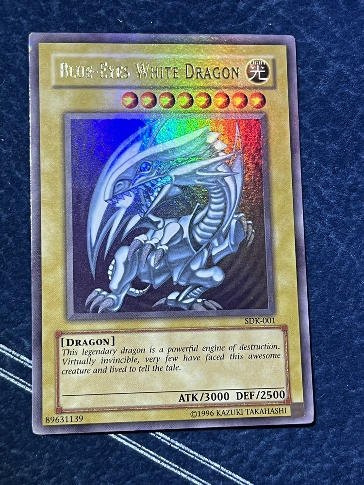 Blue-Eyes White Dragon Misprint Max Foil Bleed Sdk Starter Deck Kaiba LP/MP+. Condition is Ungraded. Shipped with USPS Ground Advantage....