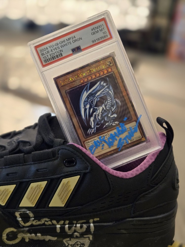 Card was signed by the voice actor himself Eric Stuart. **Card Only** PSA graded card ! This rare and powerful card from the Yu-Gi-Oh! TCG features the legendary Blue-Eyes White Dragon creature/monster type, with a stunning attack power of 3000 and a defense toughness of 2500. The card is in English language and has a rarity of Ultra Rare, making it a valuable addition to any collection. The card has unlimited features, allowing it to be used in a variety of decks. It was manufactured by Konami and is in pristine condition, ready to be placed in a protective sleeve and displayed with pride. Don't miss your chance to own this iconic card.
