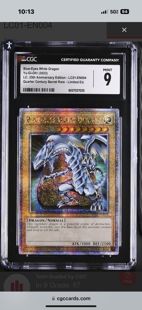 This Blue-Eyes White Dragon Quarter Century Secret Rare is absolutely stunning—the holographic finish pops beautifully, and the card’s condition is flawless. As a collector, I’m thrilled to own such a rare piece from the 25th Anniversary set. The seller’s packaging was top-notch, ensuring it arrived safely, and their fast shipping was a huge plus. If you’re a Yu-Gi-Oh! fan or serious collector, this card is a must-have—it’s a true gem that stands out in any collection!