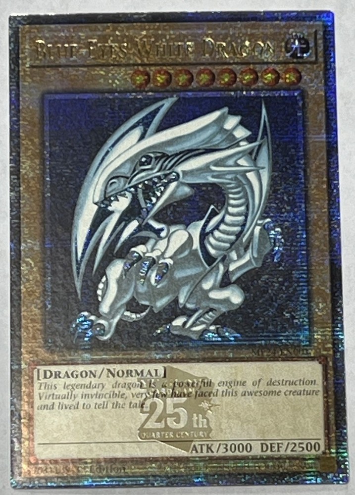 Unleash the power of the legendary Blue-Eyes White Dragon from the 25th Anniversary Tin: Dueling Mirrors set, a must-have for any Yu-Gi-Oh! TCG collector or duelist. This Quarter Century Secret Rare card, numbered MP24-EN001, boasts an impressive attack power of 3000 and a robust defense toughness of 2500, ready to make a significant impact in your deck. The card features the sought-after 1st Edition mark, ensuring its place as a valuable piece in your collection. With its pristine English language print and the prestige of being a Normal type card, the Blue-Eyes White Dragon is a standout piece manufactured by Konami, eager to elevate your game play or display.