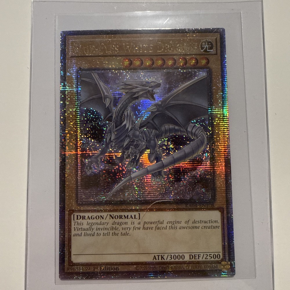 The Blue-Eyes White Dragon from the Quarter Century Stampede set is a highly sought-after Quarter Century Secret Rare card in the Yu-Gi-Oh! TCG. This foil card features the powerful Blue and White dragon attributes, making it a valuable addition to any collector's deck. Manufactured by Konami in Japan, this normal card is in near mint or better condition, perfect for fans of collectible card games looking for a rare and unique piece to add to their collection.