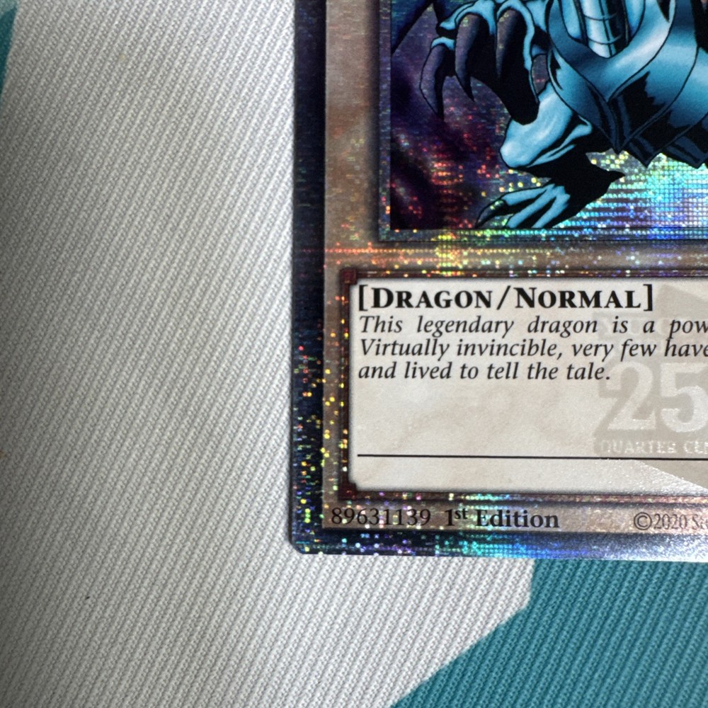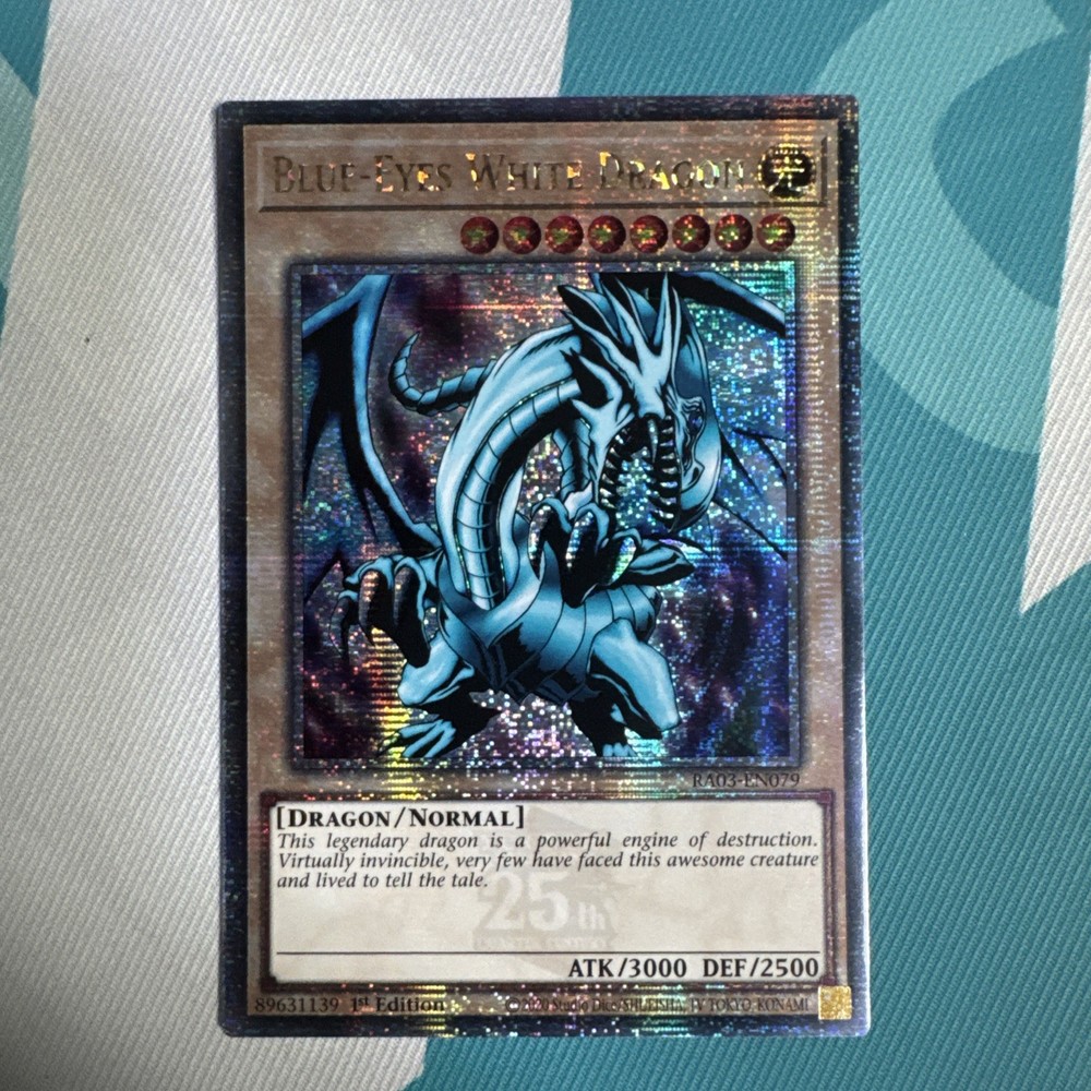 Unleash the power of the legendary Blue-Eyes White Dragon from the Quarter Century Bonanza set, card number RA03-EN079. This iconic monster boasts an attack power of 3000 and a defense strength of 2500, making it a formidable addition to any Yu-Gi-Oh! TCG lineup. With its Quarter Century Secret Rare rarity, owning this card is a true treasure for both collectors and players alike. The Blue-Eyes White Dragon card is a Normal type produced by Konami and features the 1st Edition mark, signifying its value and exclusivity. Its attribute color is Light, and it's tailored for those who speak English. Prepare to elevate your game with this potent creature/monster type dragon, a staple in the Yu-Gi-Oh! universe. CHECK OUT MY OTHER ITEMS!!