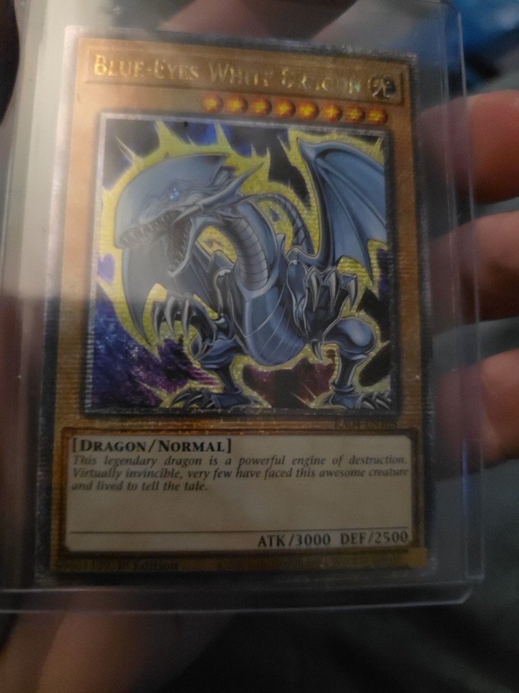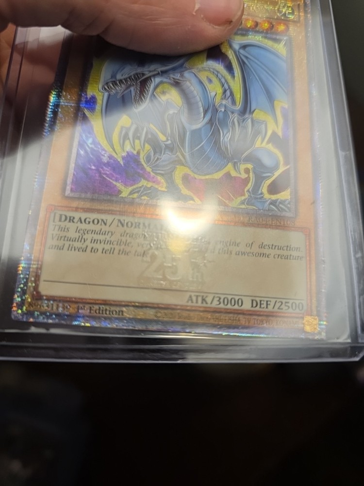 The Blue-Eyes White Dragon (Quarter Century Secret Rare) card from the Yu-Gi-Oh! TCG is a highly sought-after collectible for fans of the game. This limited edition card, featuring a dragon creature type with 2500 defense and 3000 attack power, is part of the Quarter Century Stampede set and is stamped with a 25th anniversary quarter century secret rare rarity. Produced by Konami and printed in English, this 1st edition card is a valuable addition to any collector's deck.