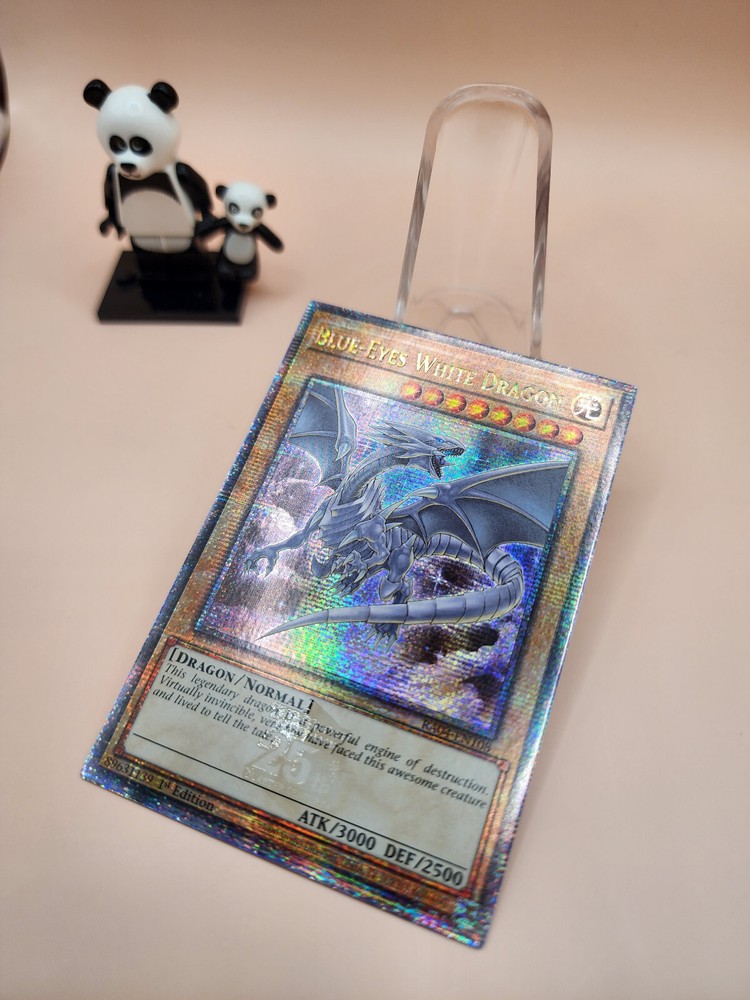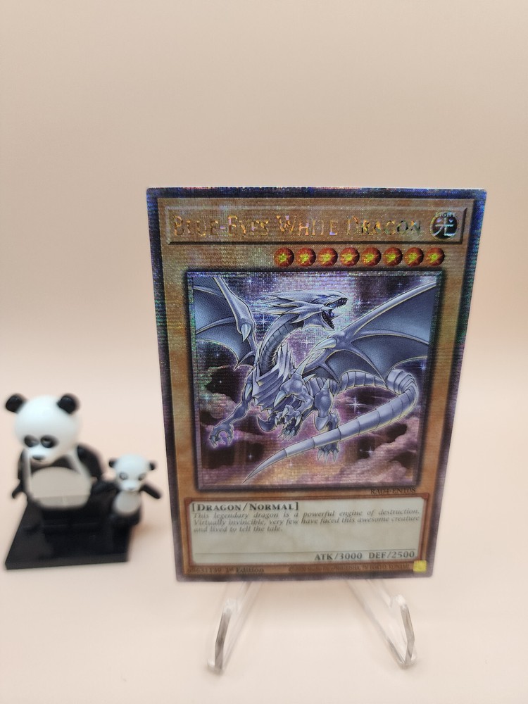 Selling Blue-Eyes White Dragon RA04-EN108 (8th Art) Quarter Century Secret Rare Condition is Near Mint. Card will be shipped in penny sleeve and top loaded. Please review photos carefully for consideration! Panda minifigure is not included! Stored in Smoke Free building! Shipping to US only! Shipping will generally be with USPS Ground Advantage unless there is competitive pricing with UPS/Fedex with same delivery time frame as USPS Ground Advantage. Tracking will always be included! Feel free to ask questions!
